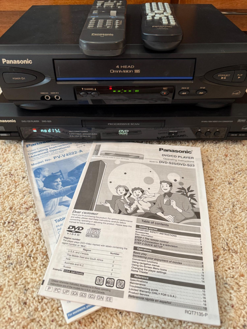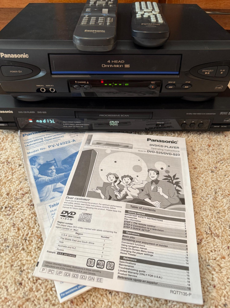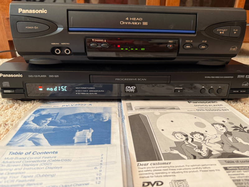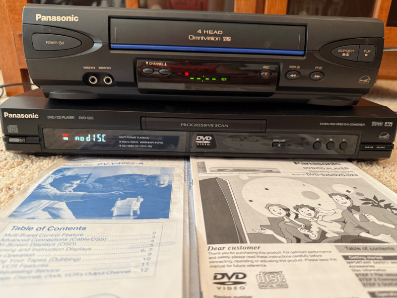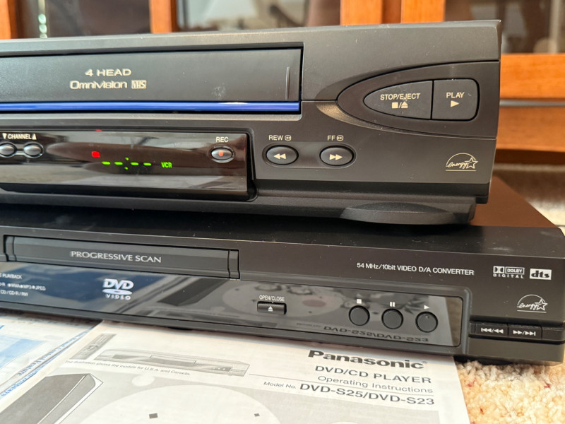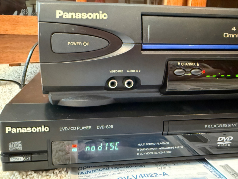 Panasonic Omnivision VHS Player & DVD/CD Player Panasonic 4 Head Omnivision VHS Player/Recorder Panasonic DVD/CD Player model DVD- S25 Each power on, functions not tested.