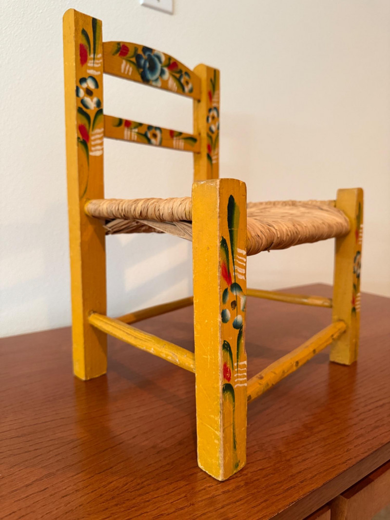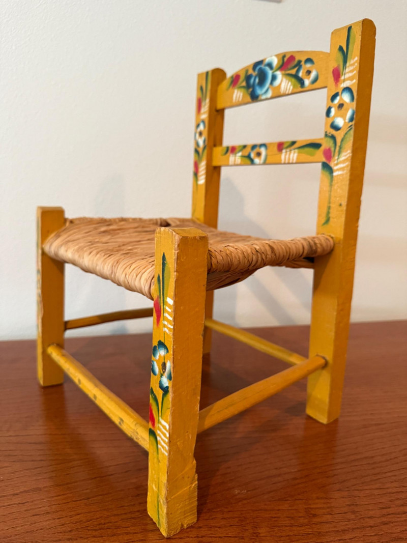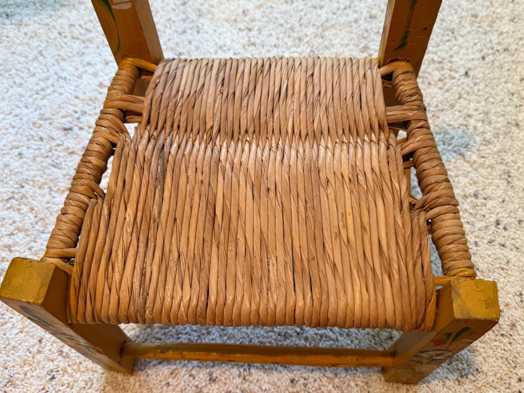 Wood chair with rush seat 12” x 9.75” x 16.25”