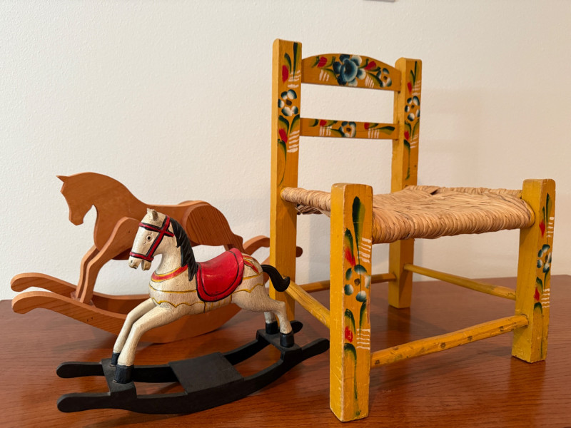 Folk Art Miniatures Raw wood rocking horse 16x4.5x9” Victorian Style Hand Painted Vintage Rocking Horse 11“ x 2.75“ x 8“