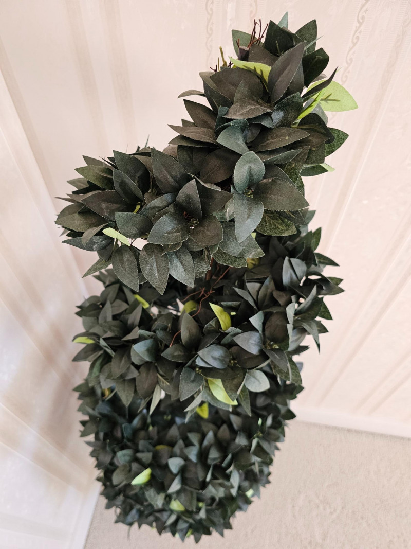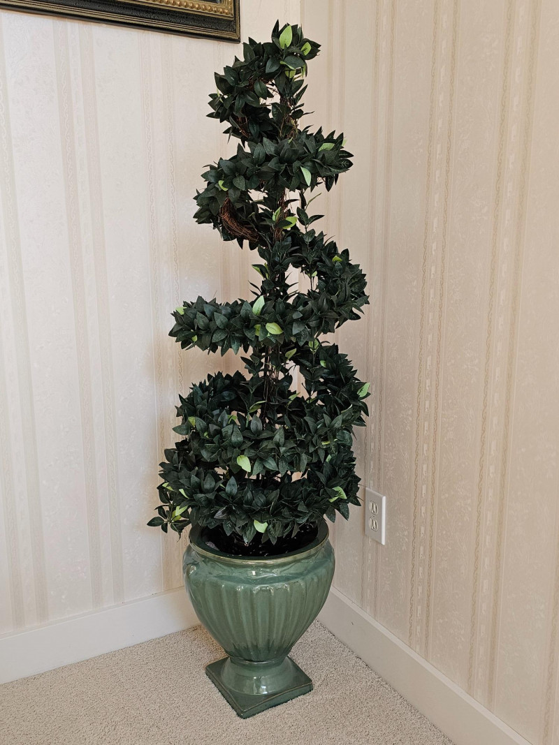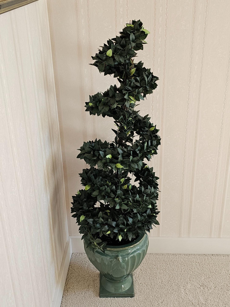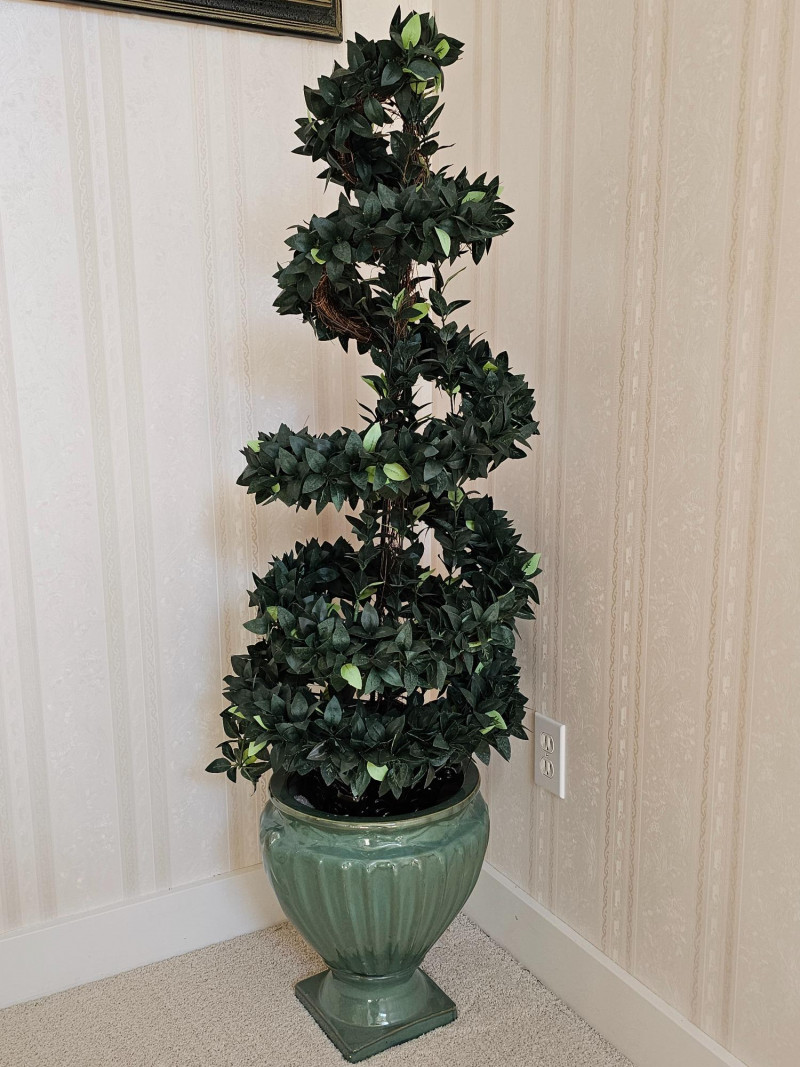 4ft Tall Artificial Spiral Topiary Tree In Light Green Decorative Ceramic Pot These types of artificial plants are popular for their aesthetic appeal and low maintenance: They are crafted to mimic the distinct spiral shape of traditional topiaries, offering a classic and elegant look. This faux topiary has been kept inside the home on the stairway landing and is super clean! 53""T x 17"W