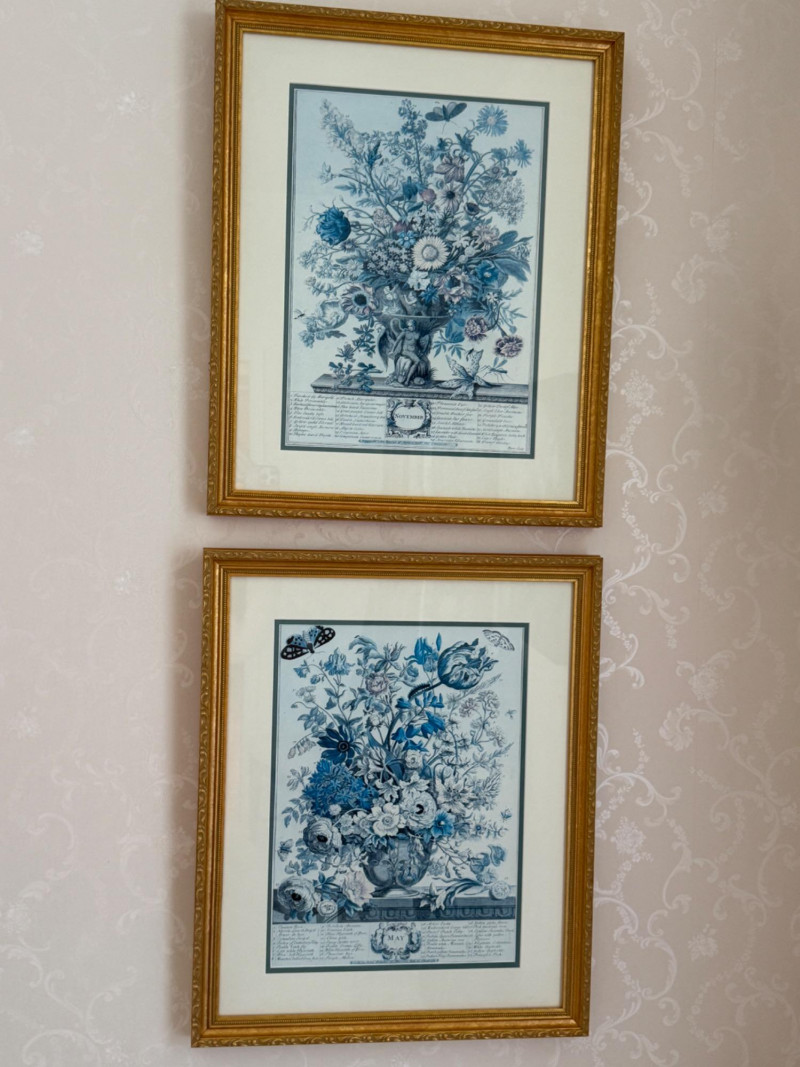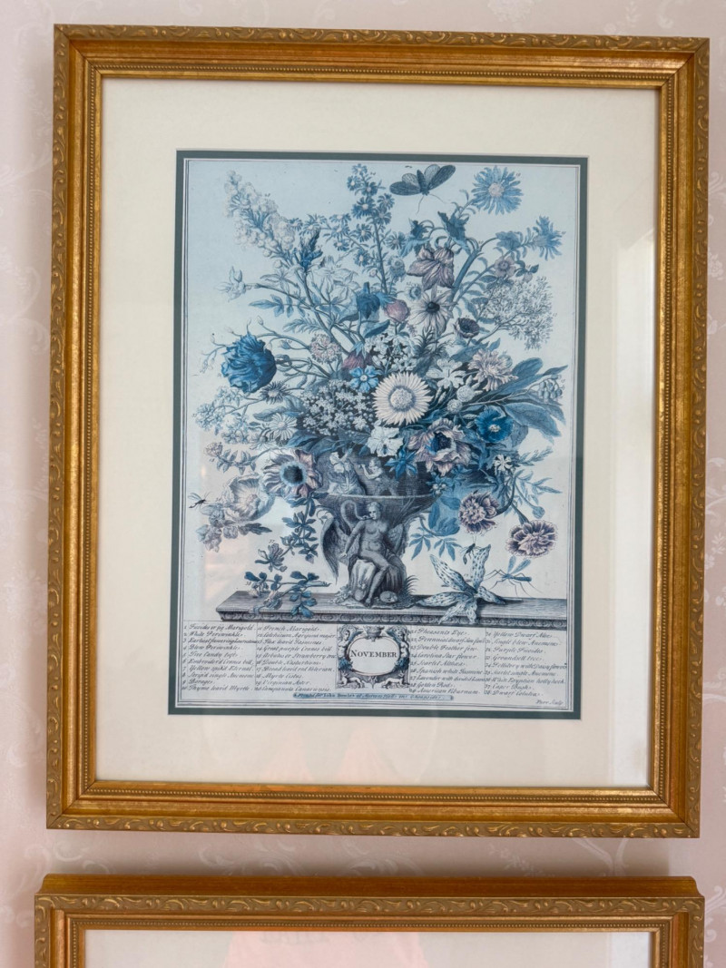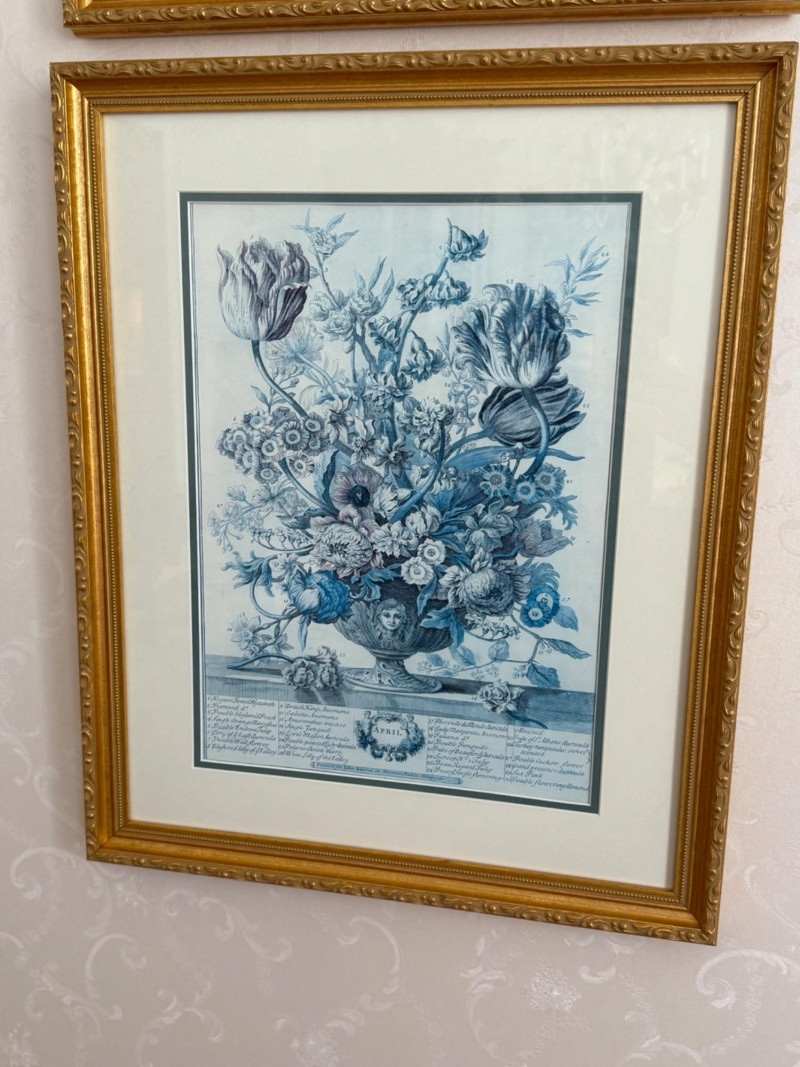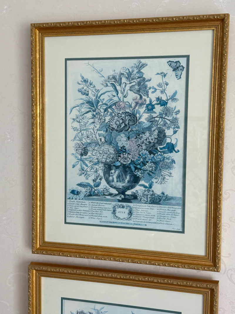 (5) Robert Furber 12 Months Of Flowers Framed Reproductions double matted in gold frame. April May July November