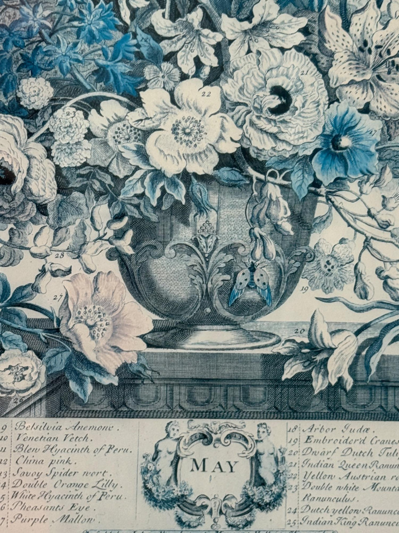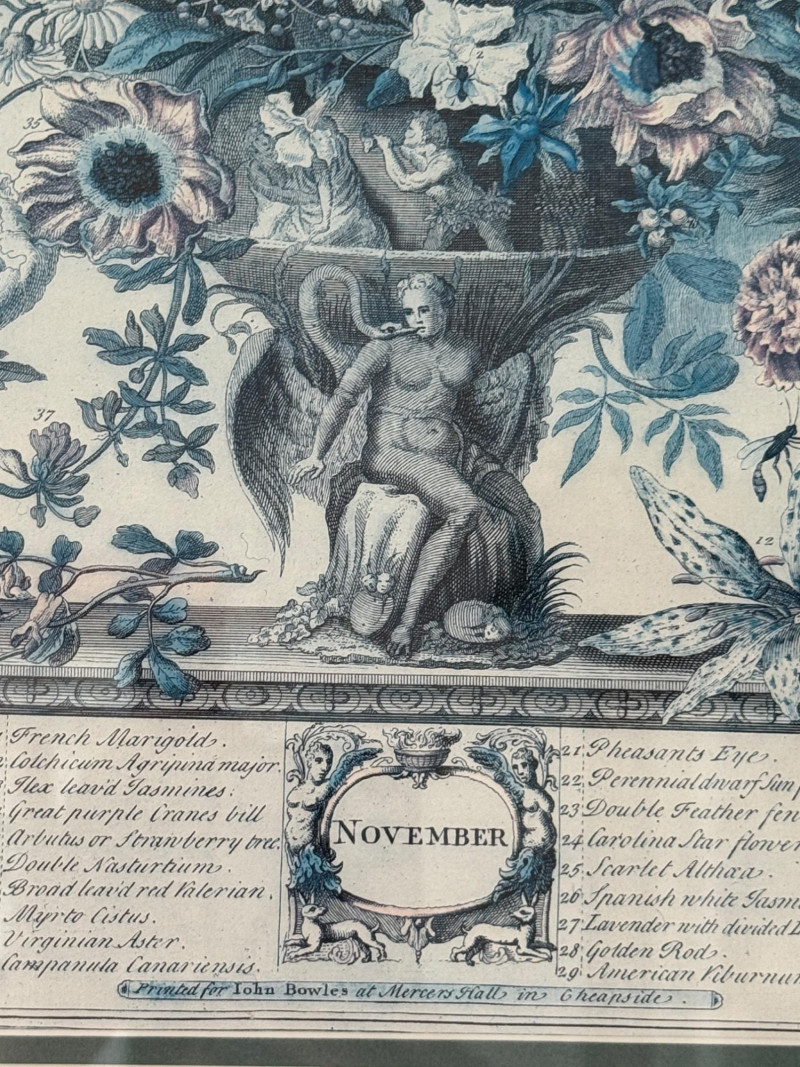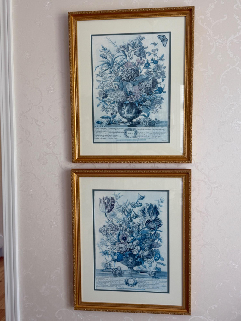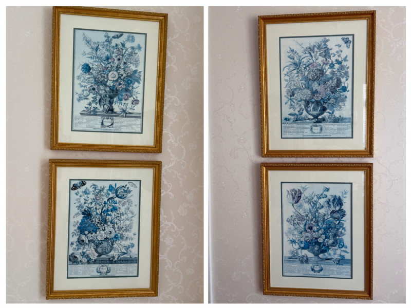 (5) Robert Furber 12 Months Of Flowers Framed Reproductions double matted in gold frame. April May July November