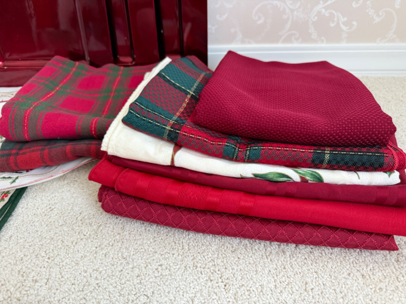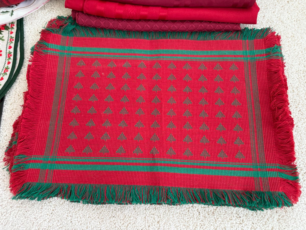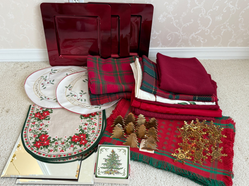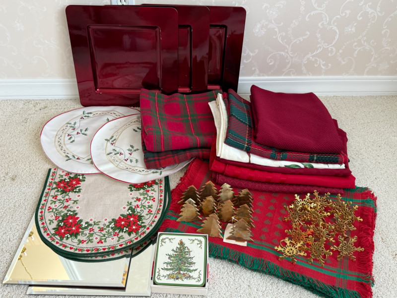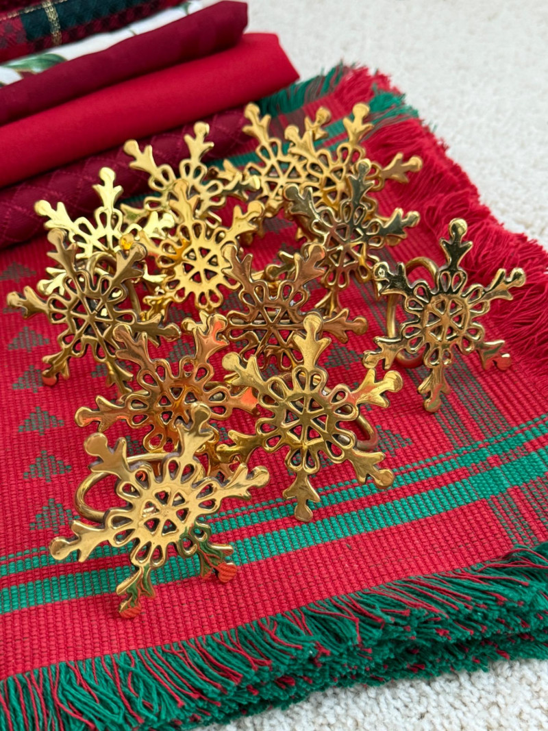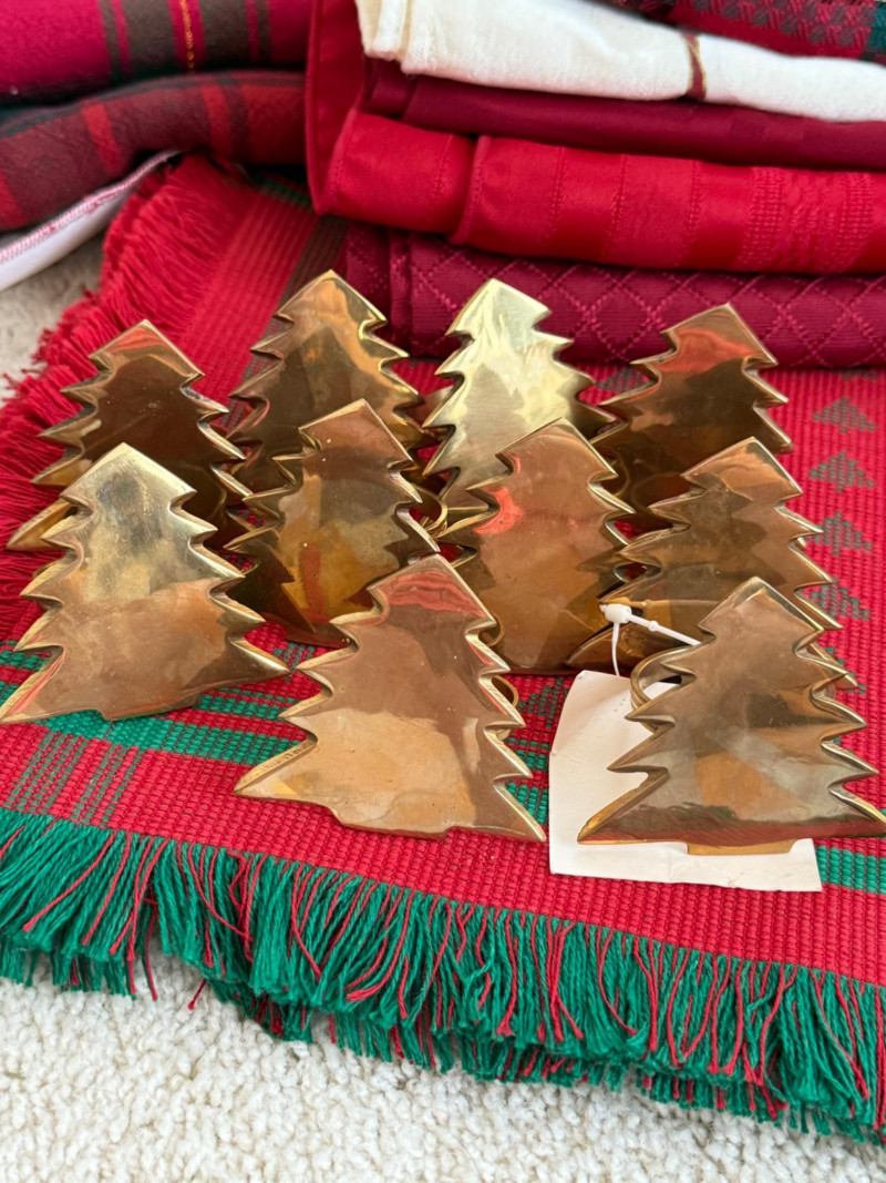Lot # 67 - Holiday Table Linens & Brass Napkin Rings