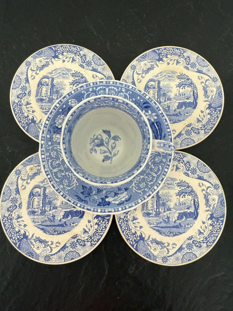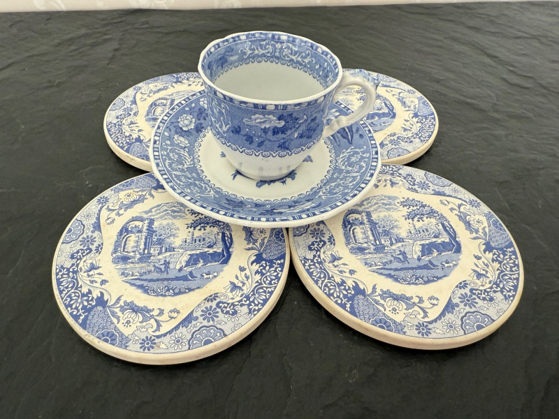 Spode “Camilla” Copeland Tea Cup & Saucer & 4 Piece Coaster Set