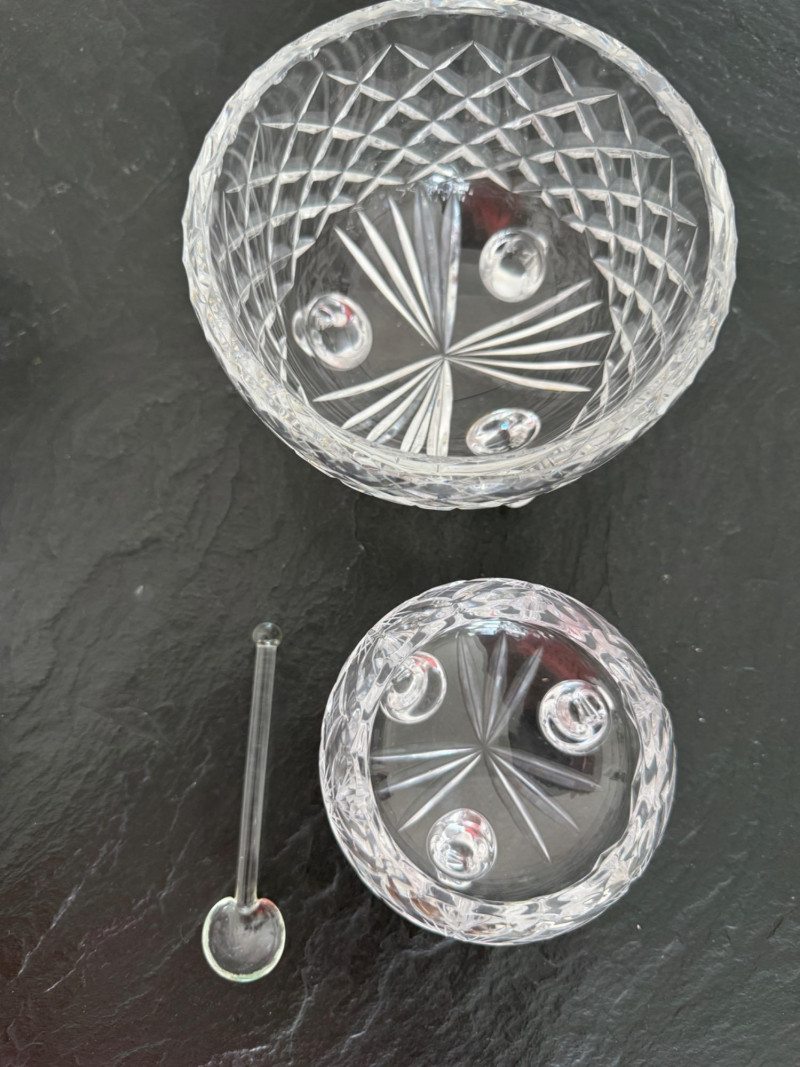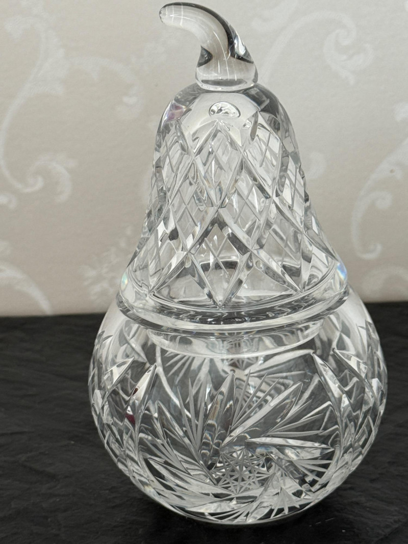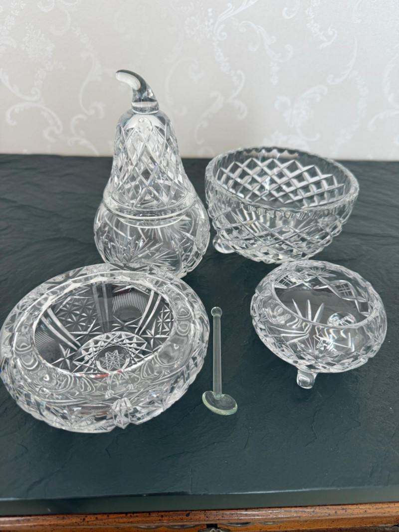 Unique Crystal Pear Footed Bowls & Ashtray Miniature glass spoon Largest footed bowl is 5”x3.5” Pear is 3.5x6”