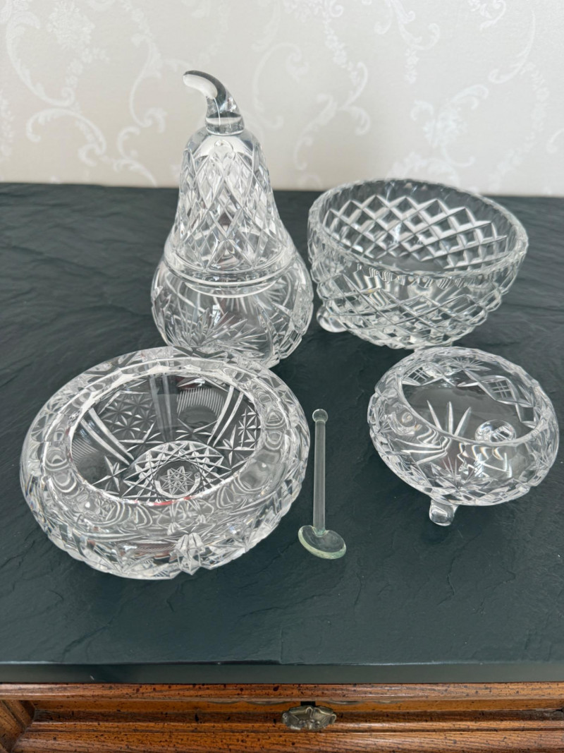 Lot # 75 - Unique Crystal Pear - Footed Bowls & Ashtray