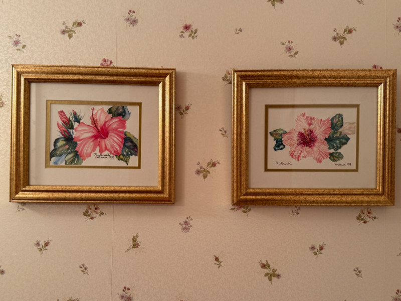 (2) Original Hibiscus Watercolor Paintings by Rebecca Lowell, Maui ‘99