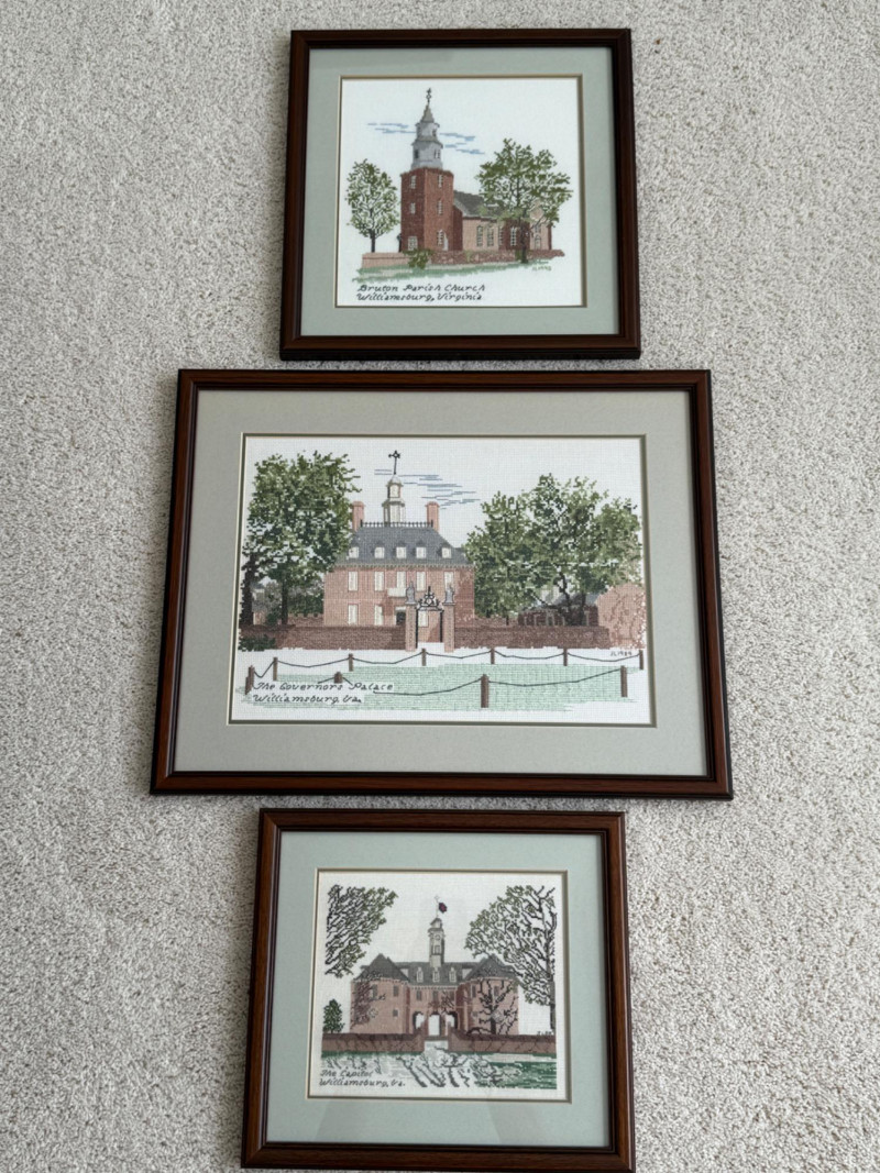 Lot # 82 - (3) Williamsburg Virginia Cross Stitch Art