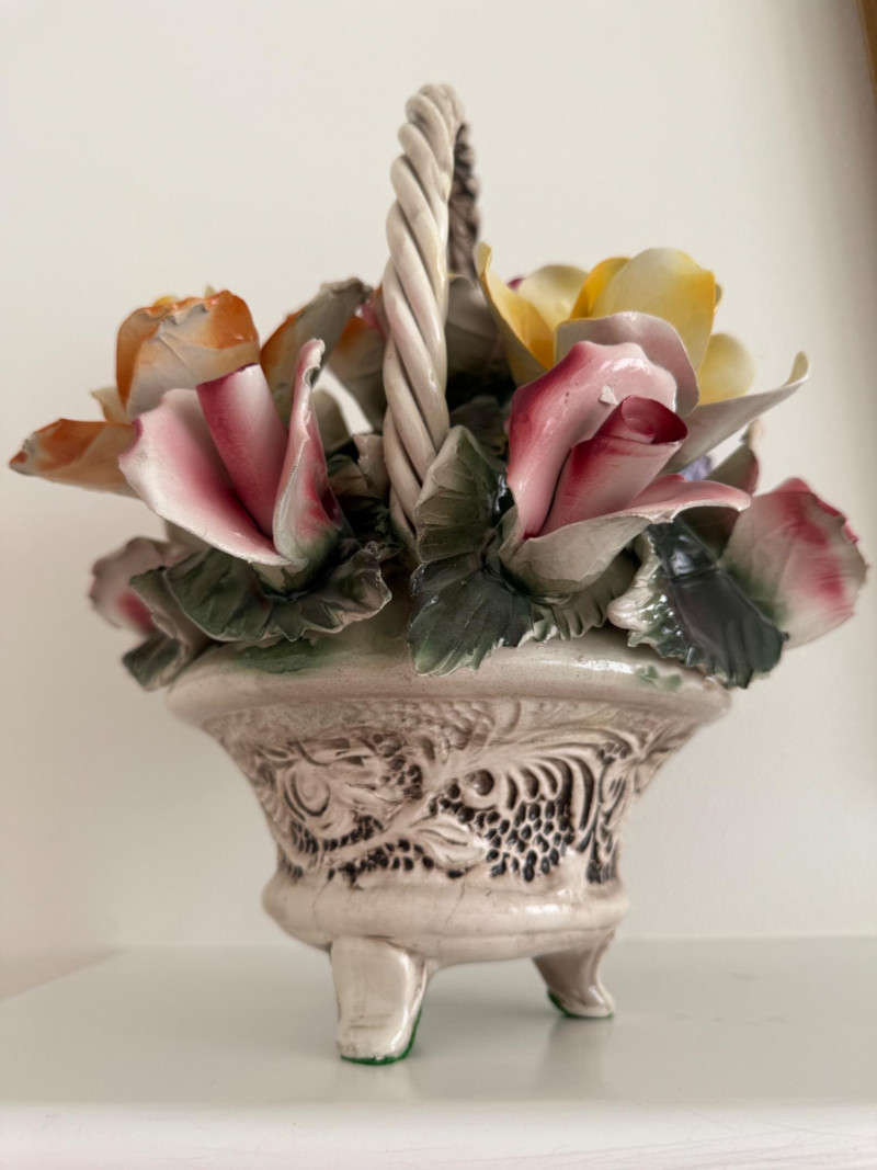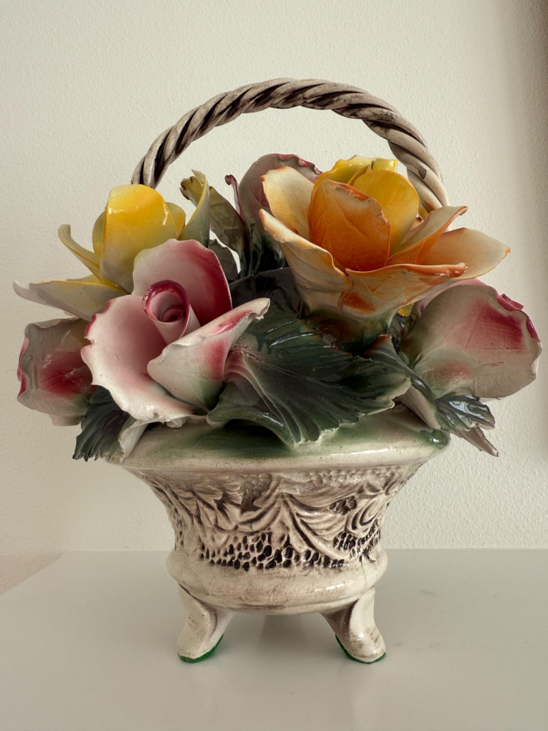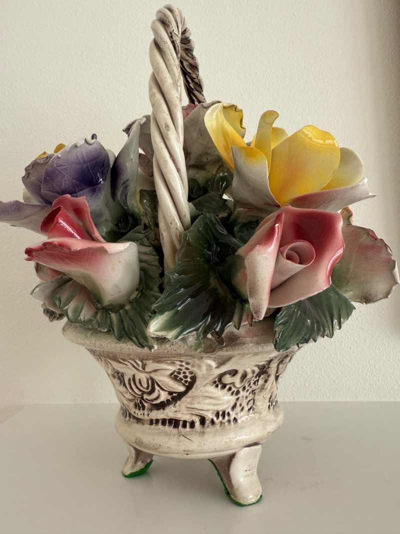 Lot # 86 - Vintage Capodimonte Style Basket of Flowers
