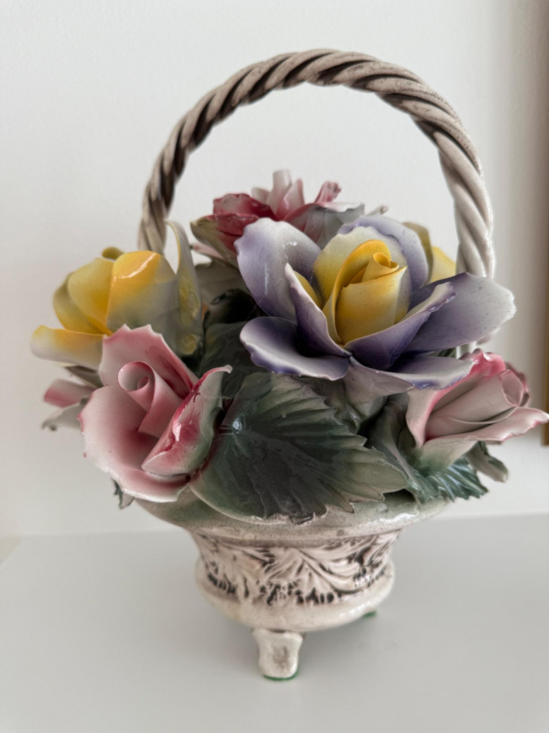 Vintage Capodimonte Style Basket of Flowers 11“ x 12“ Unknown Maker