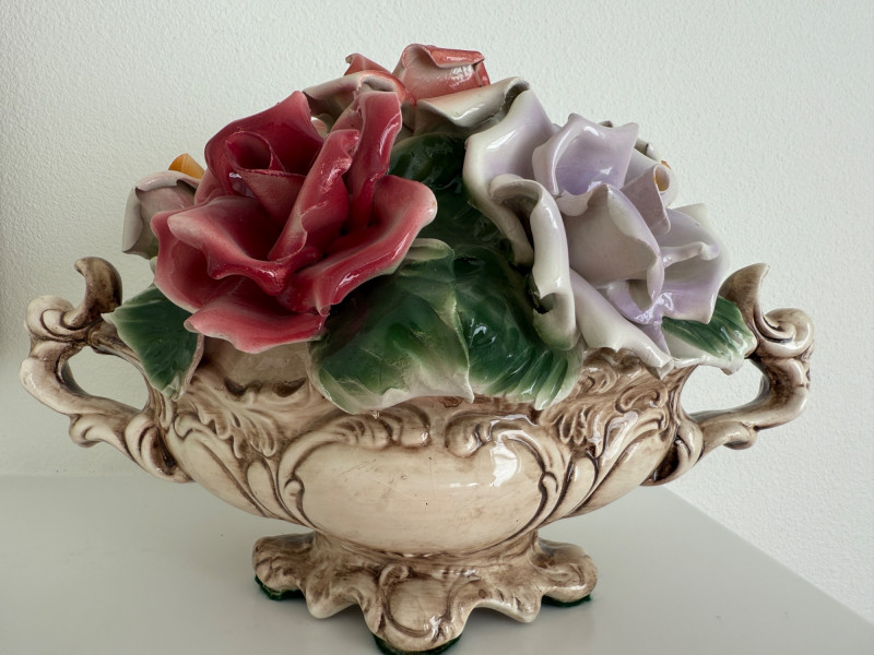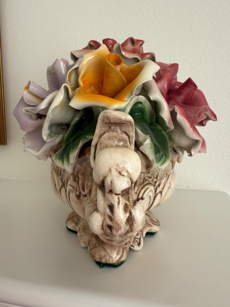 Vintage Capodimonte Porcelain Floral Centerpiece is 12“ x 7“ x 8.5“ tall