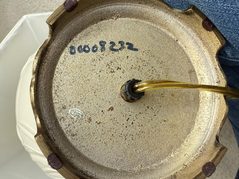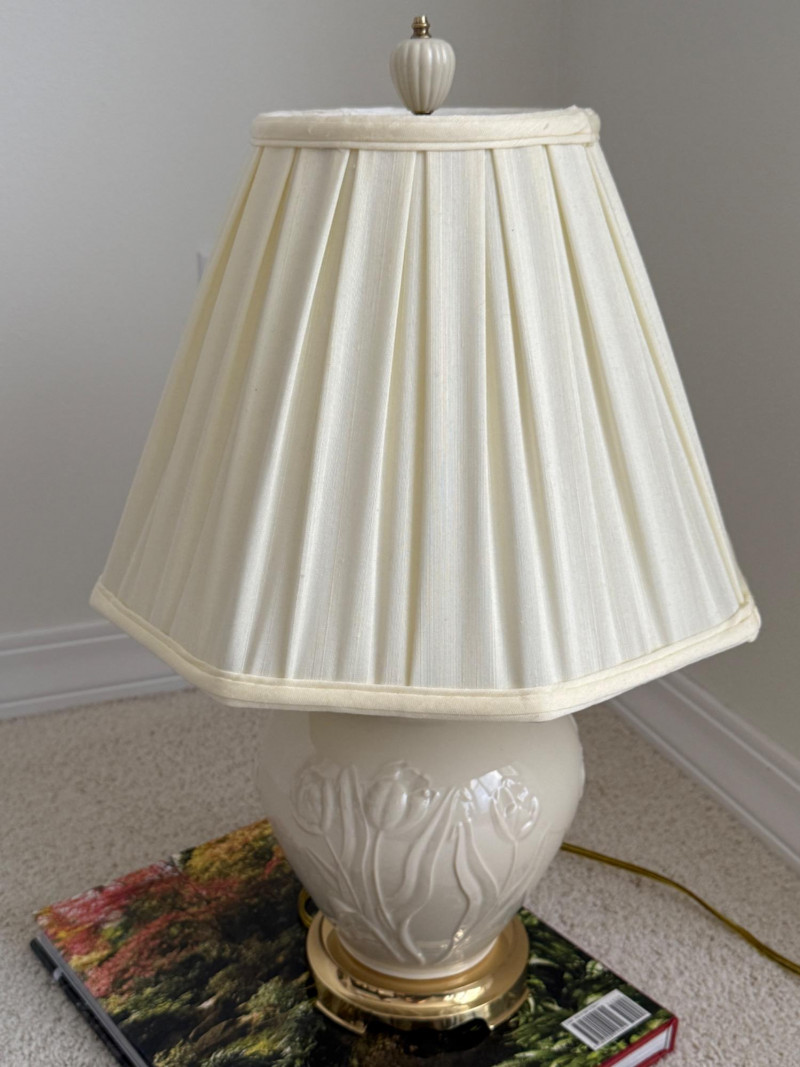 Lenox Porcelain Ivory Tulip Table Lamp with gold base & shade. 7.5”‘diameter 21” tall