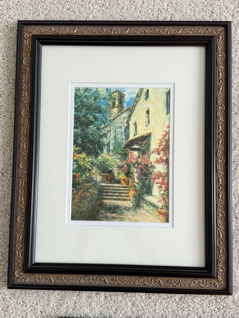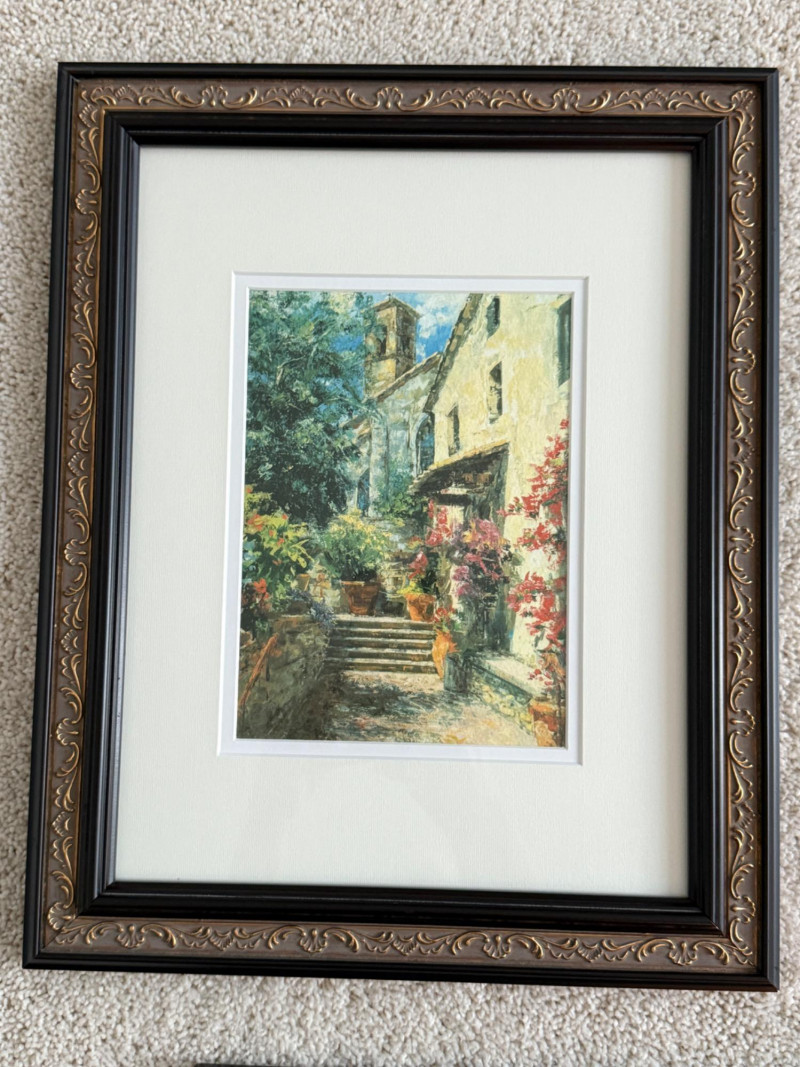 ‘Classic Italy' by Gordon Breckenridge a giclee of this beautiful watercolor scene of Italy. Double matted under glass in black and gold frame measuring 12.5x15.5”
