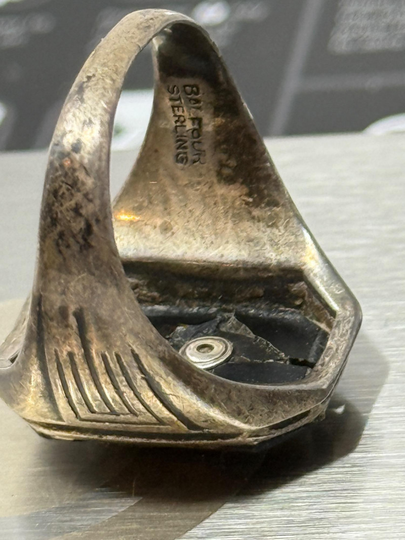 (2) Gold Rings & Balfour Sterling Ring With Stone 1.5g 10K Smaller but wider with design on side gold ring is not stamped. Verified by reputable jeweler.
