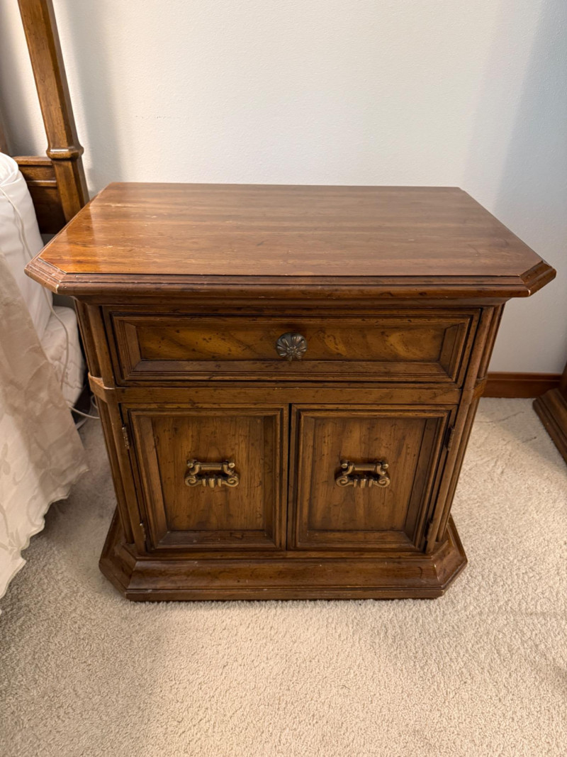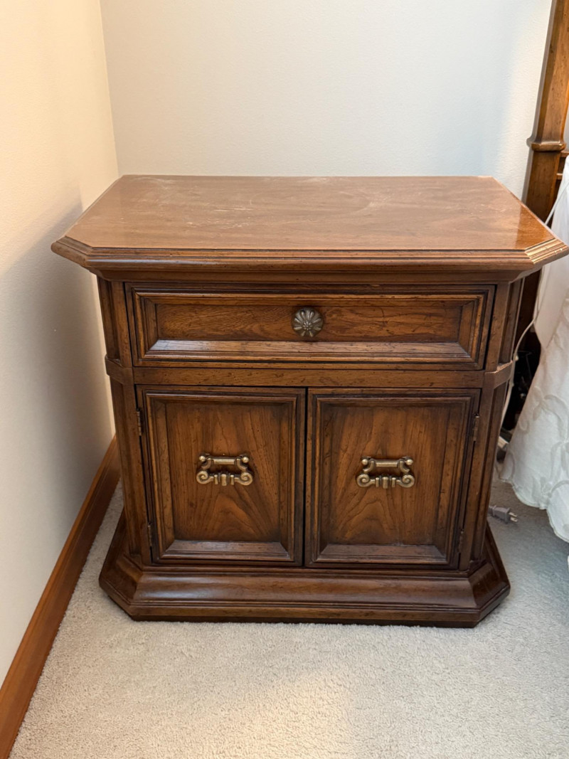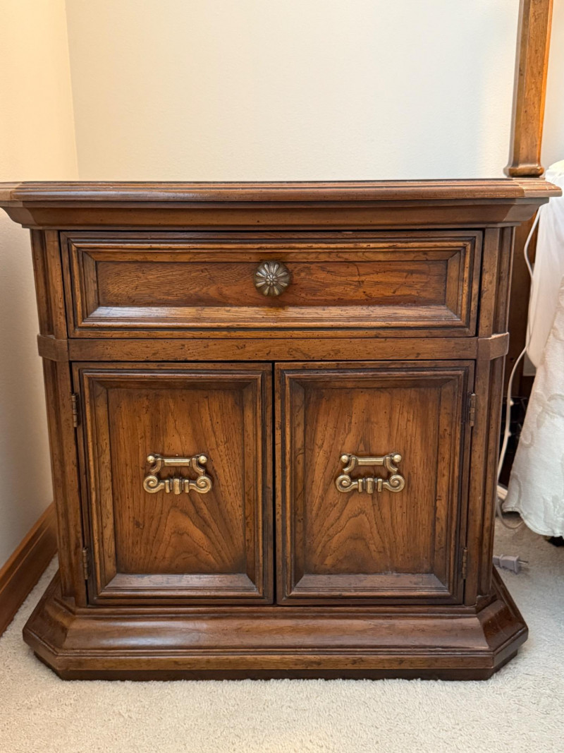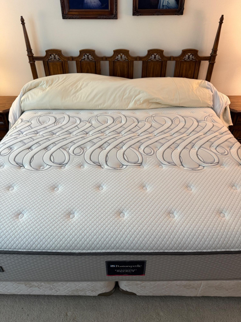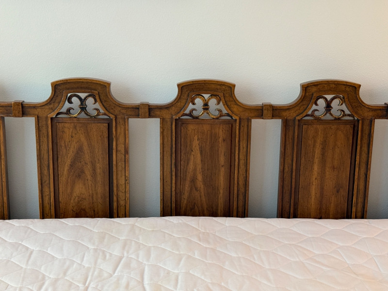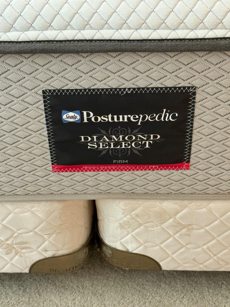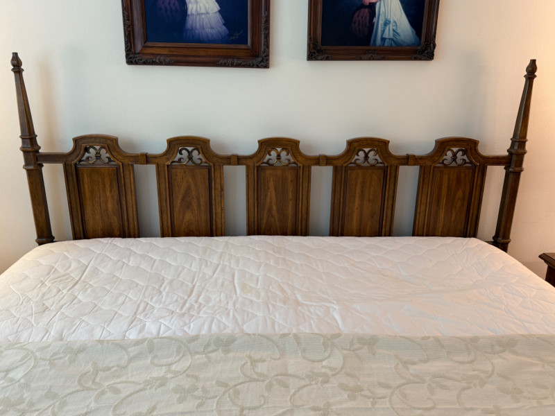 1972 Talavera by Drexel King Bed & Nightstands 6’8”x 54” Headboard Sealy Posturepedic Diamond Select Firm Mattress, Mattress Protector, Heating Pad & Twin Boxsprings Clean mattress! No discolorations or damage.