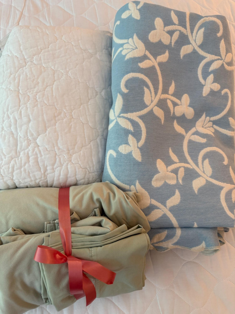 Green sheets, mattress protector.