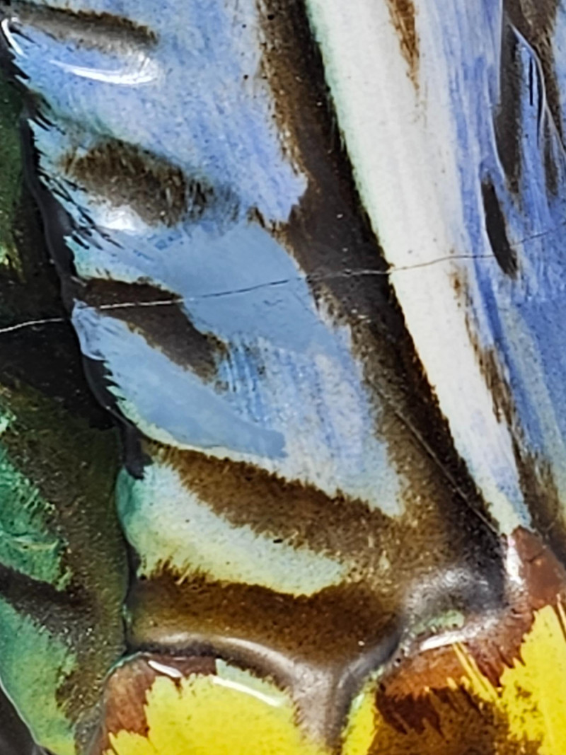 Hand-Painted Ceramic Italian Majolica Rooster Figurine Stamped on base "Made In Italy" and "HORCHOW", a luxury home furnishings retail brand Beautiful hand-painted color and a symbol of good luck and prosperity in Italy Tail appears to have been cracked and/or repaired (see pics) 16.5"T x 14.5"W x 7"D
