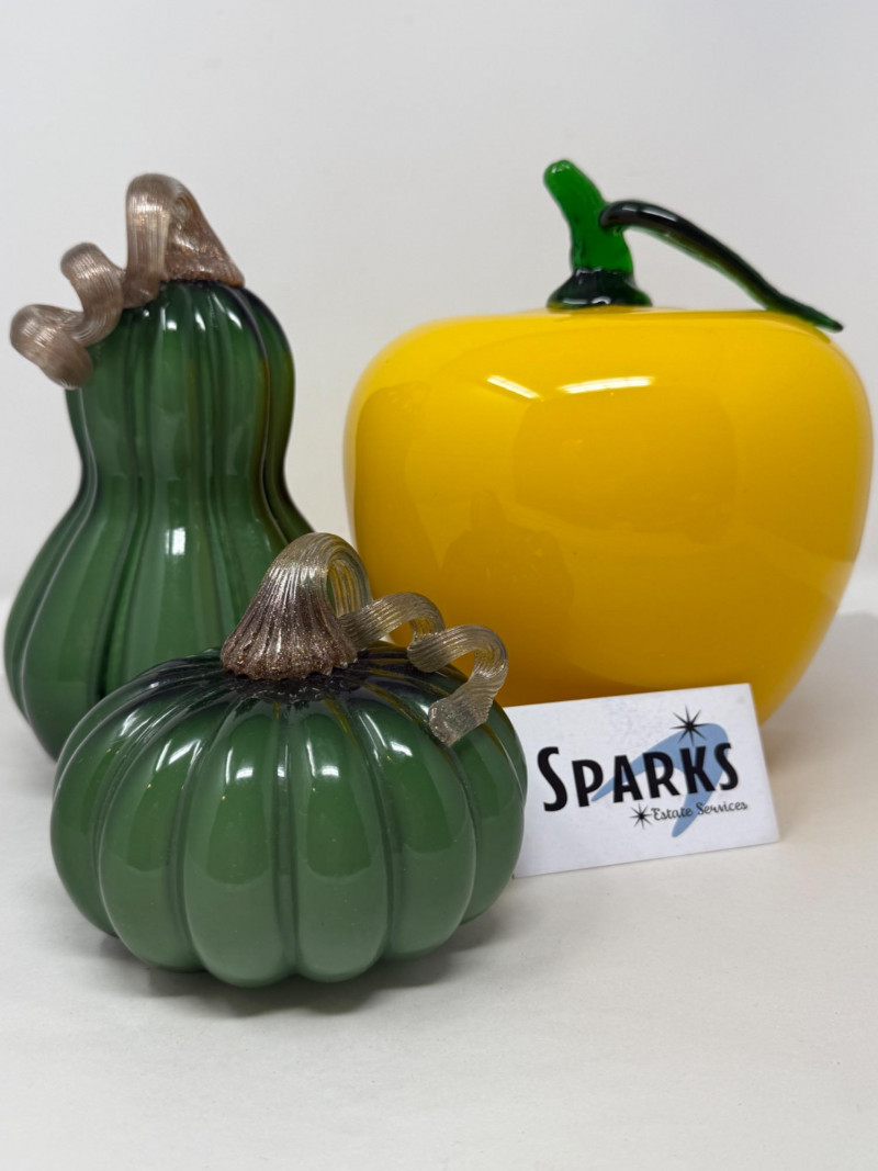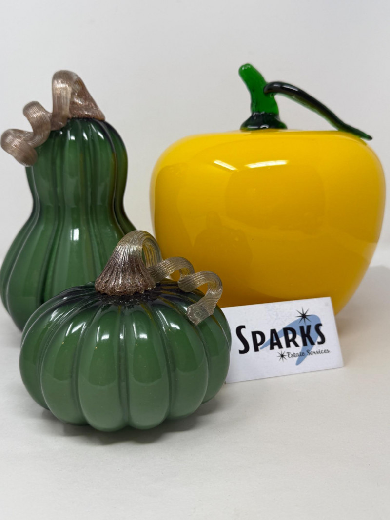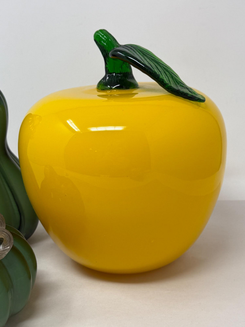 Glass Apple - Pumpkin - Squash 8x9” Golden Delicious apple 5x8” gourd 5x4.25” pumpkin