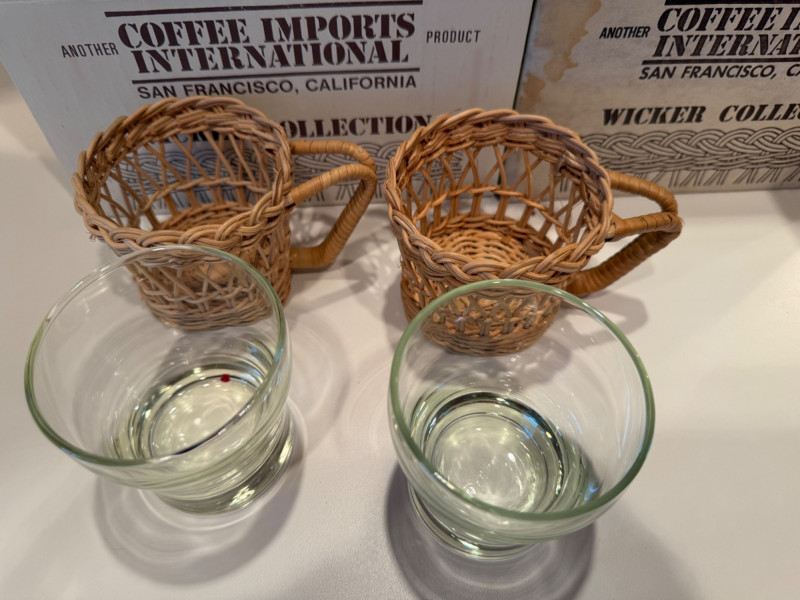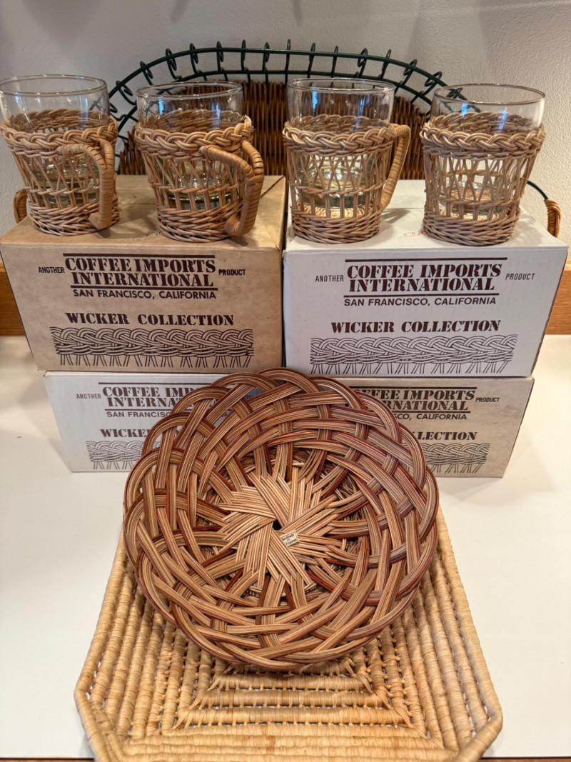 Lot # 165 - (40) Coffee Imports Intl Wicker Collection Mugs & Tray