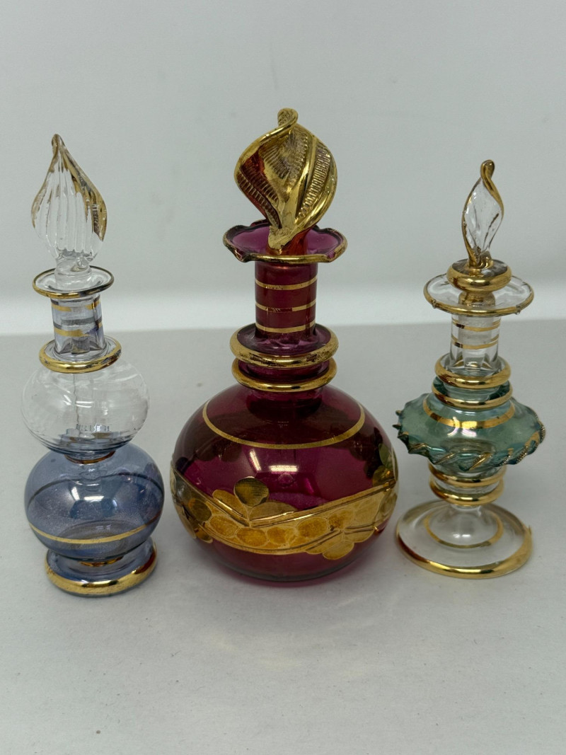Lot # 191 - (3) Delicate Blown Glass Perfume Decanters
