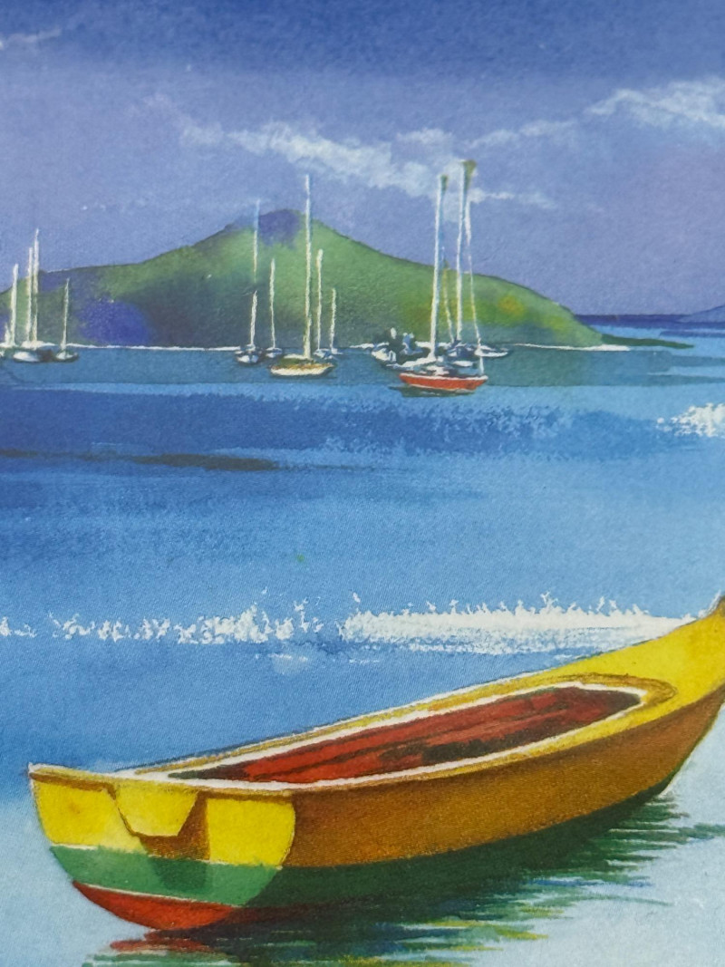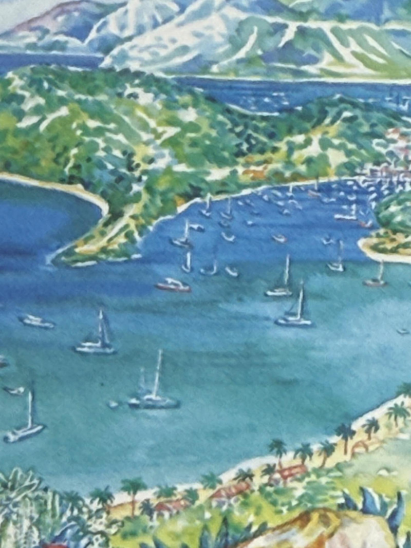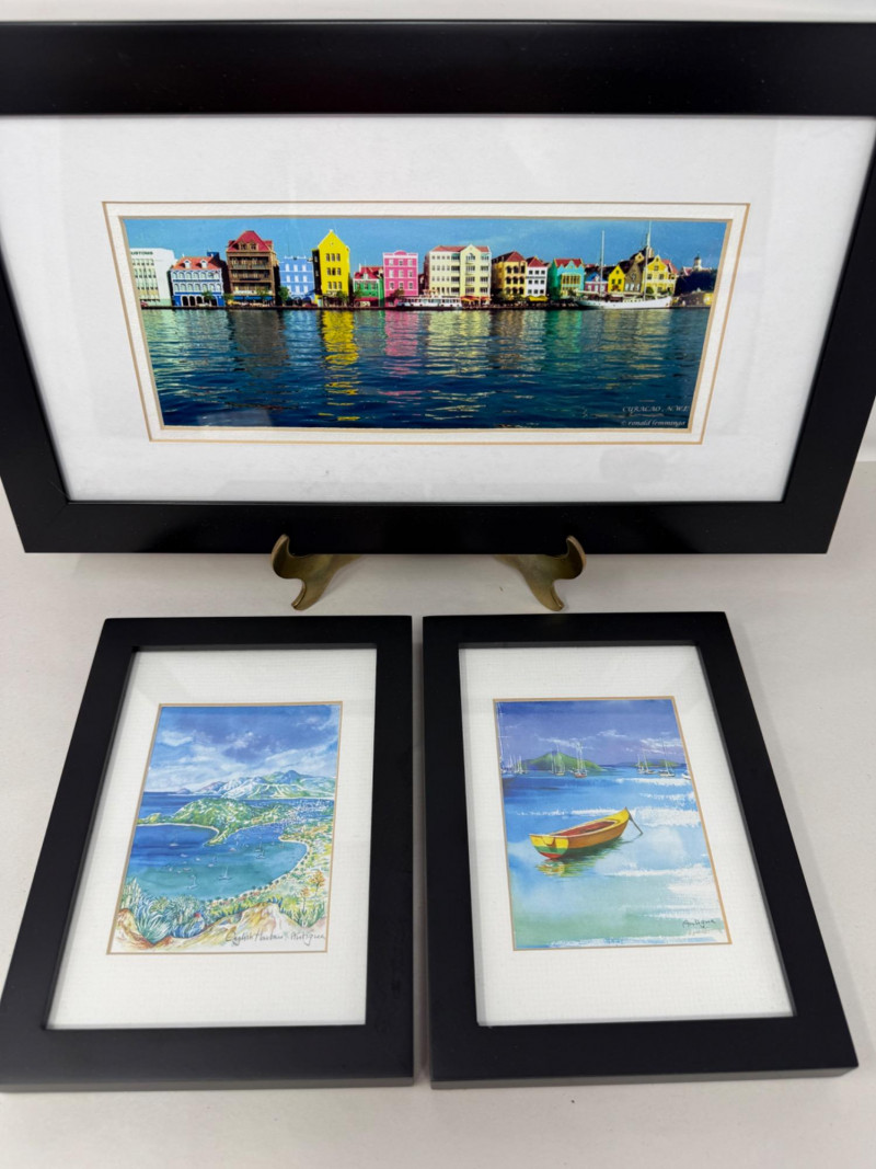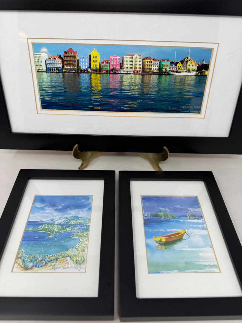 Curaçao & Antigua Art 2 Antigua Watercolors each 6x8” English Harbor Antigua Boat watercolor signed by G Gobinet Does not include brass stand.