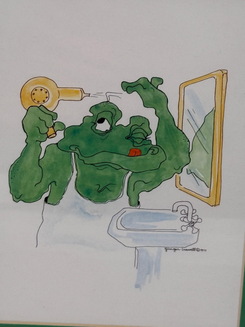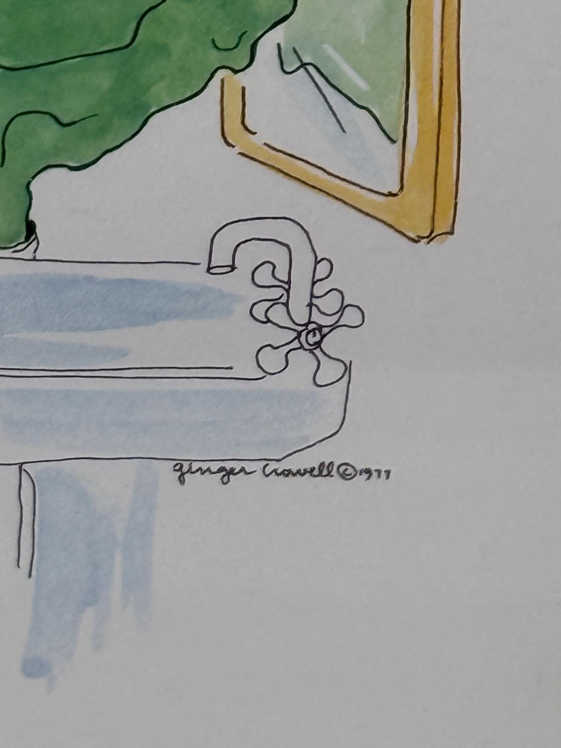 Lot # 198 - Bathroom Watercolor Print & Vase