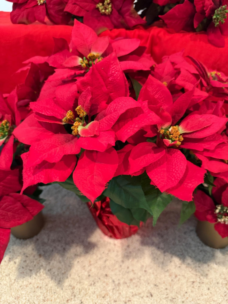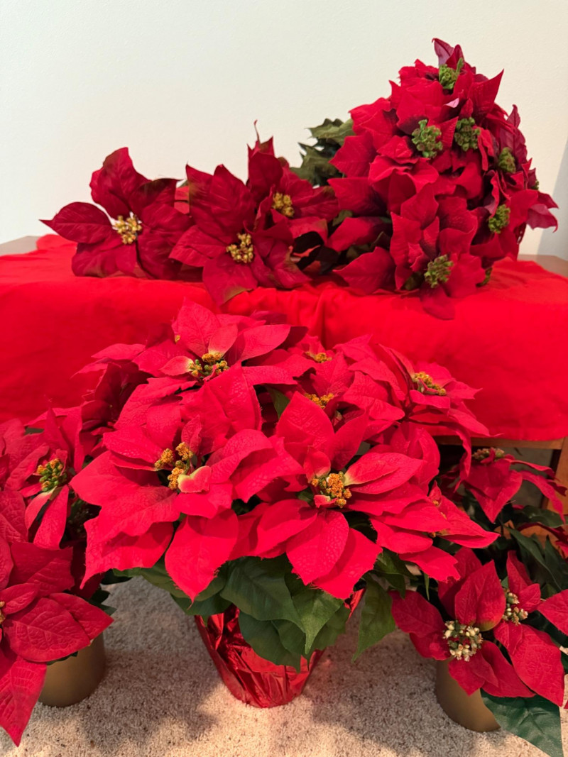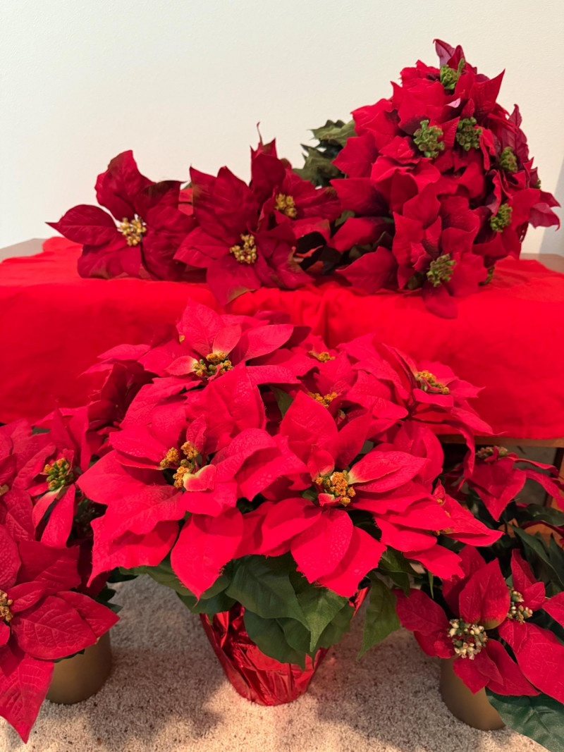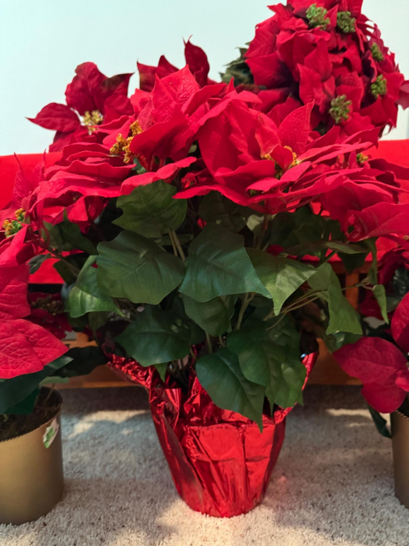 Lot # 216 - 3 Potted Faux Poinsettias & Large Bundle of Premium Stems
