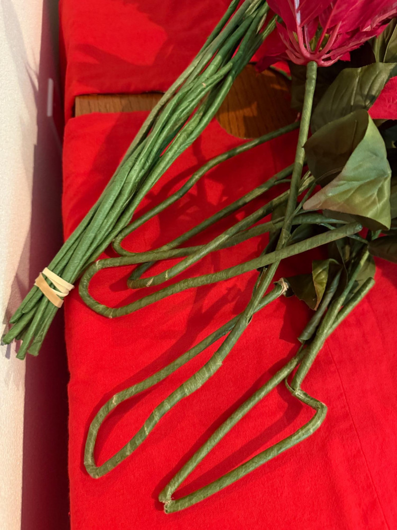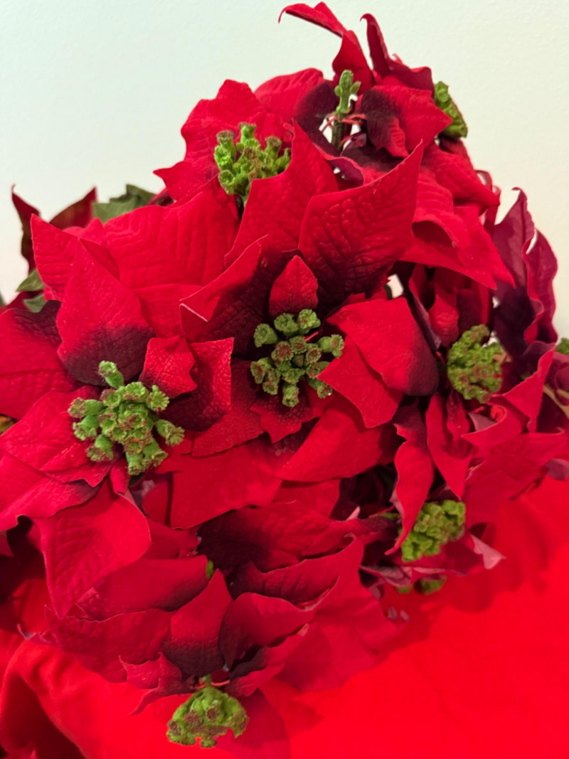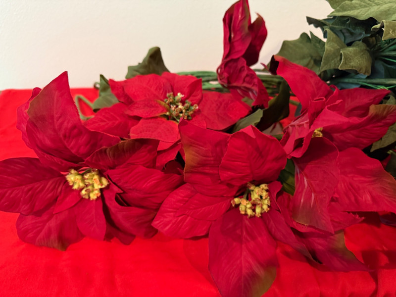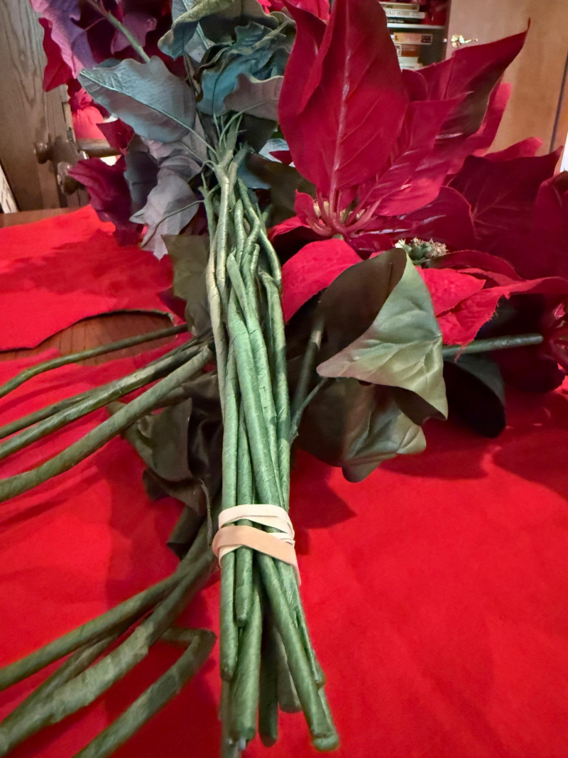 Lot # 216 - 3 Potted Faux Poinsettias & Large Bundle of Premium Stems
