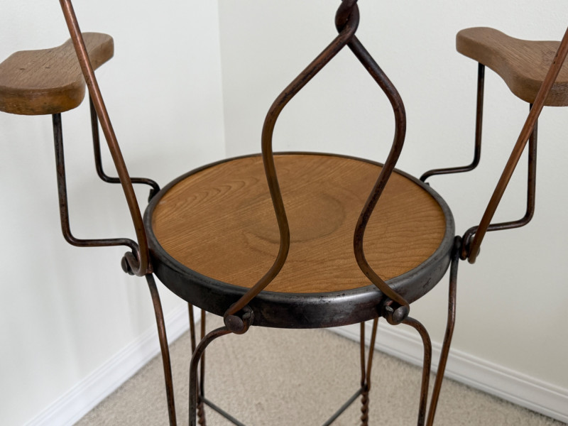 Lot # 227 - Twisted Metal Chair With Wood Arms & Seat