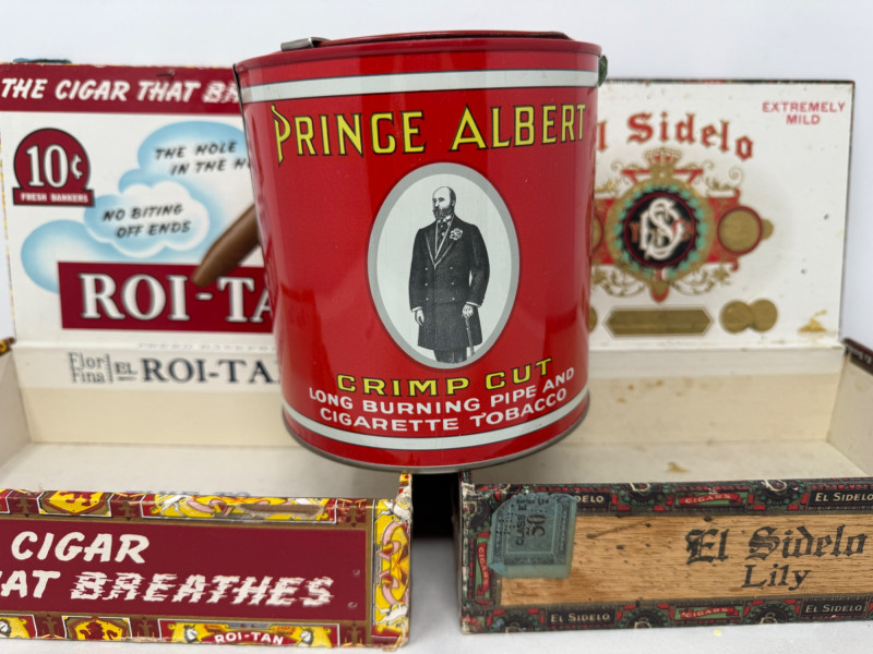 Lot # 228 - 1926 Sealed Prince Albert Tobacco Tin & Vintage Cigar Boxes