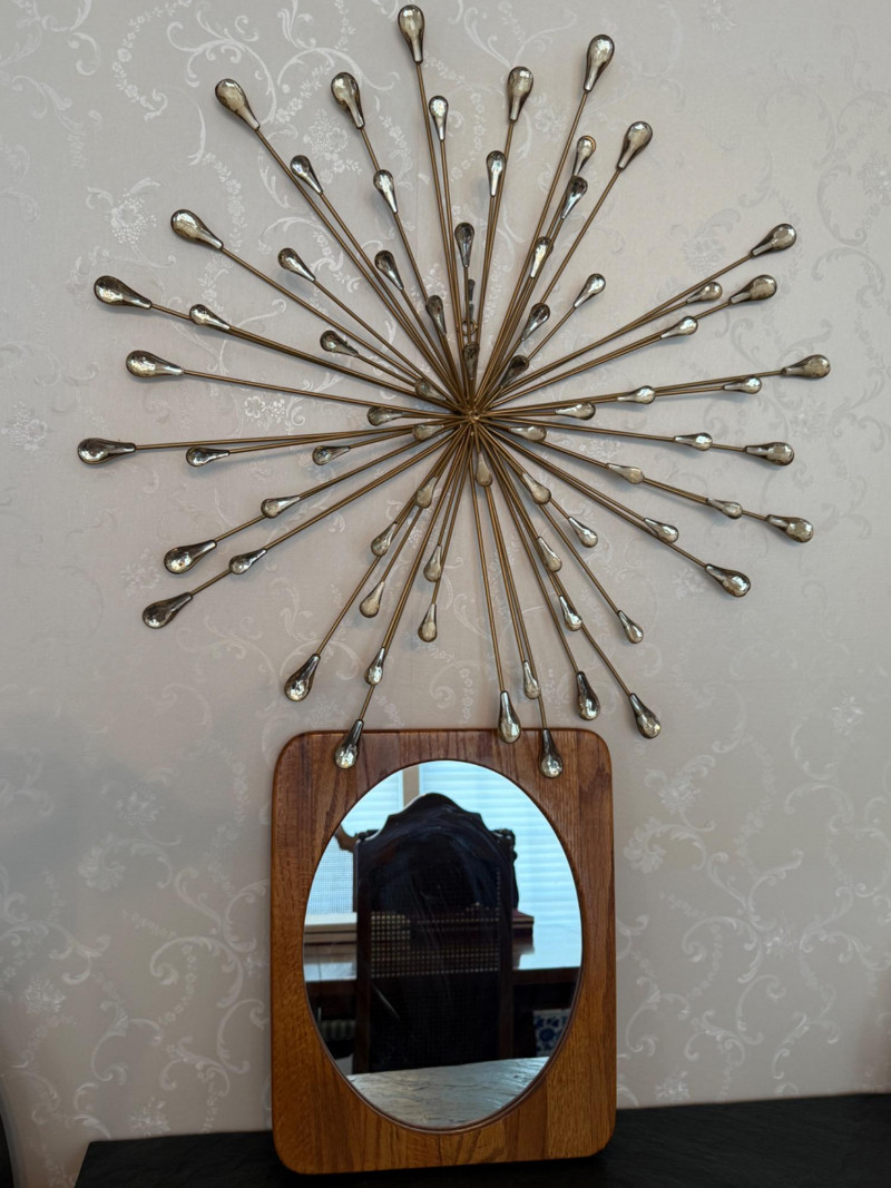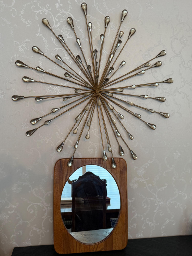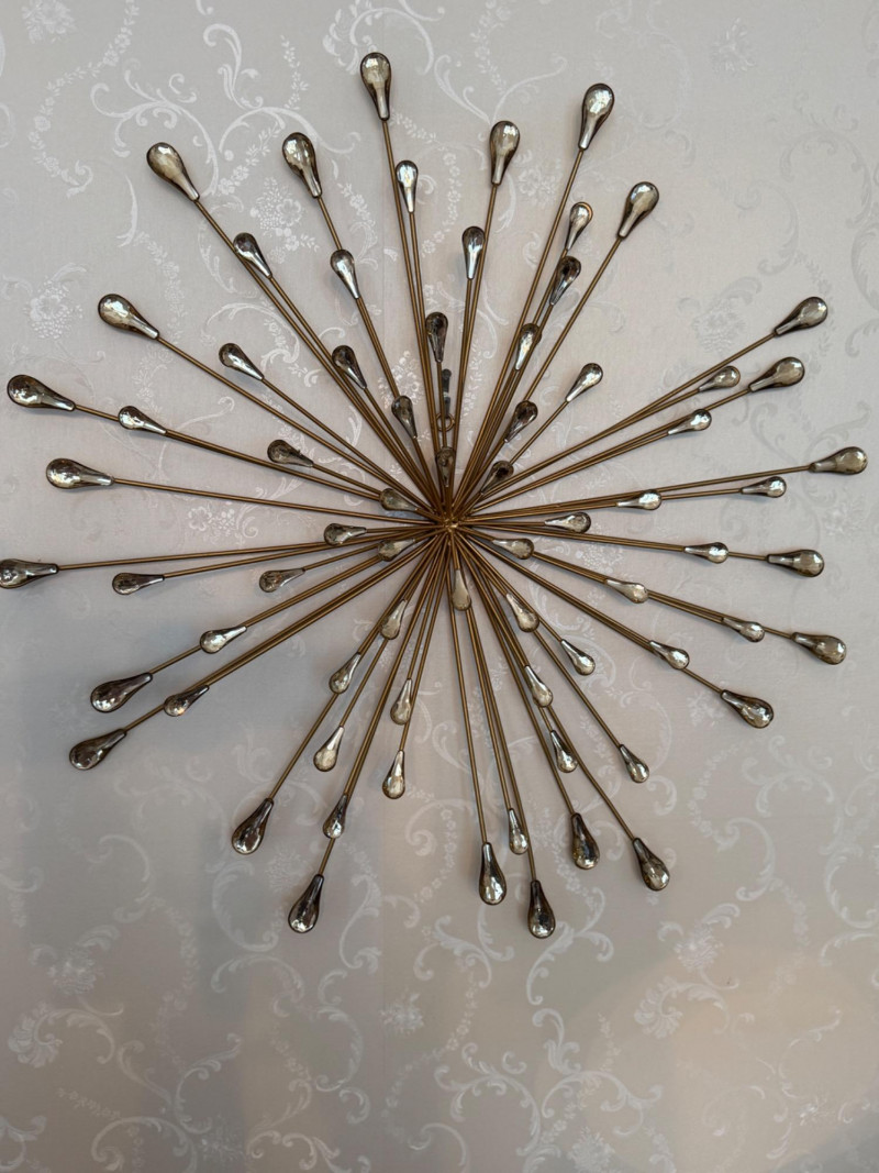 Starburst Wall Hanging & Mirror 28” Faceted Glass and Gold Starburst Wall Hanging has one detached burst that is included.