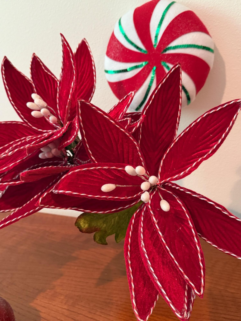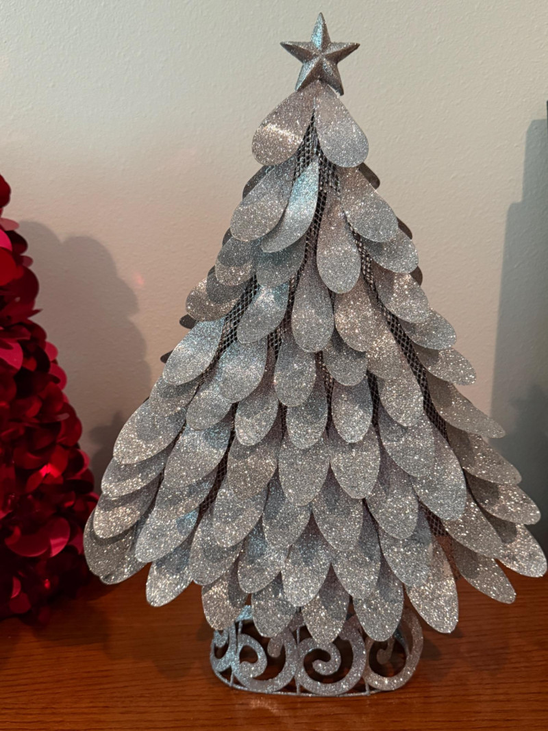 Festive Trees - Stems & Stuffed Shoe Centerpiece Silver tree is 13x17” Shoe is 9x14x4” Red and green tree, red tree, stems and lollipop.