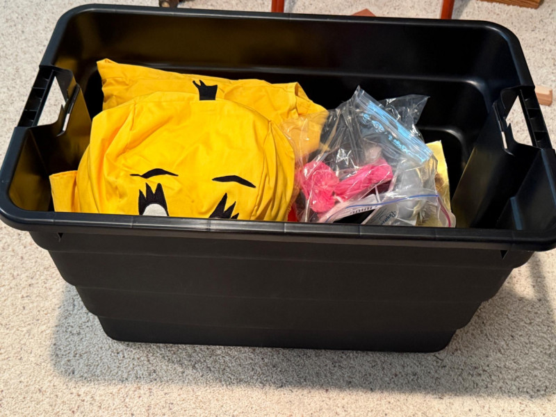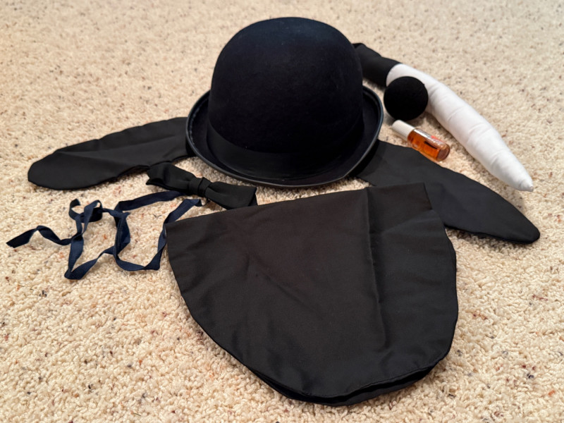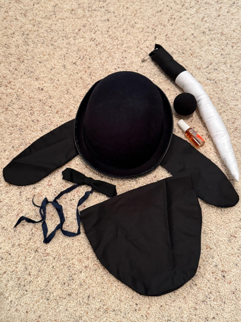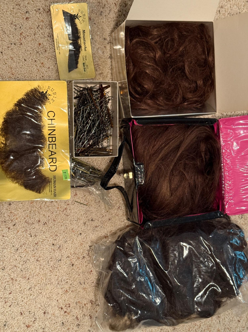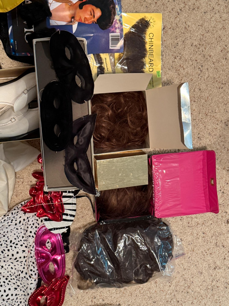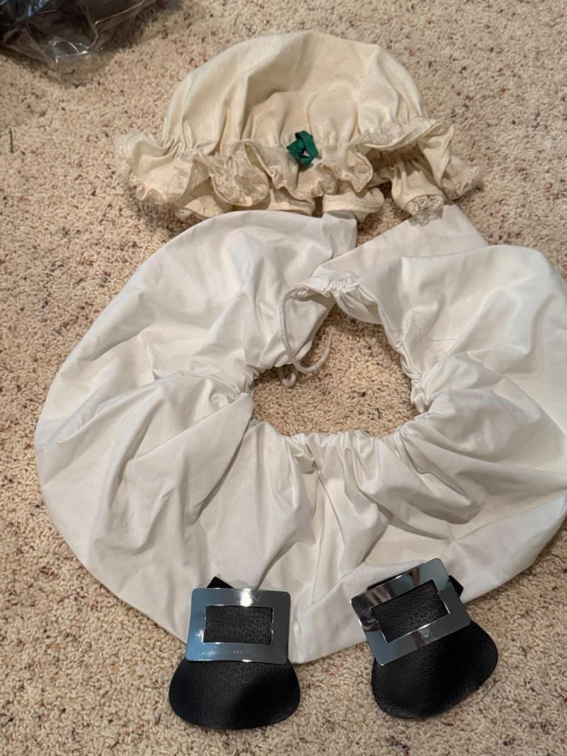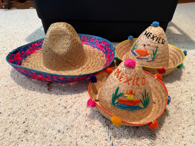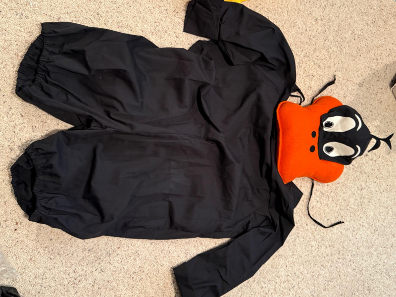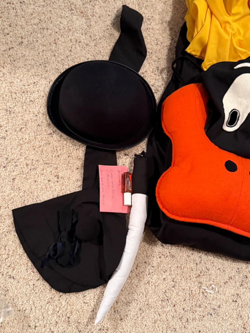 Vintage Halloween Costumes Tweety Bird fabric body and head cover adult size Daffy Duck oversized adult fabric body and head cover Pluto hat with ears, tail, nose, bow tie Elvis glasses, 10.5 shoes, smokes, belt, wig, sideburns Bonnet, dickey & shoe toppers for pilgrim real hair wigs, real hair mustache & chin hair Old and newer eye masks 3 Sombreros Very well kept quality costumes