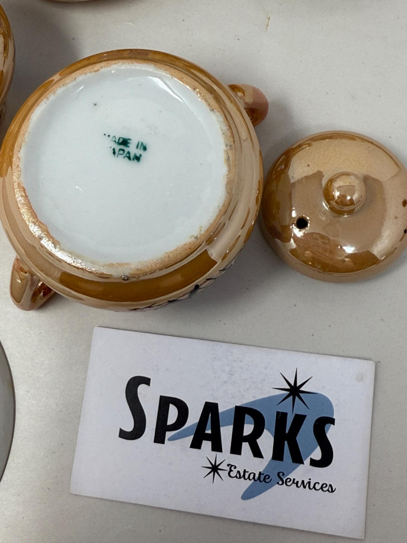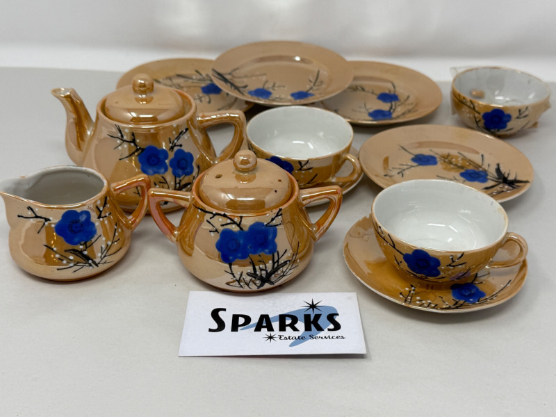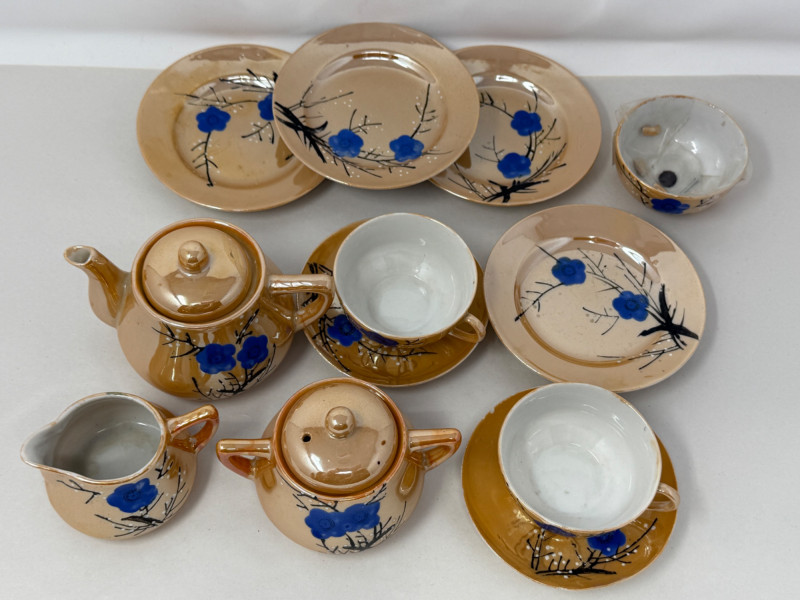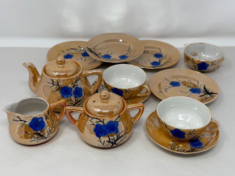 14 Piece Lusterware Tea Set This is a play tea set. One handle is broken on a cup, but included.