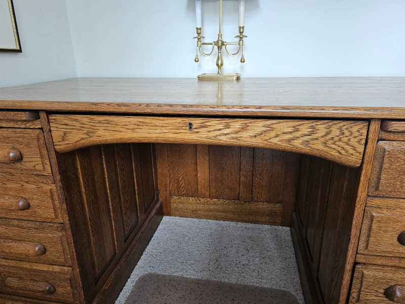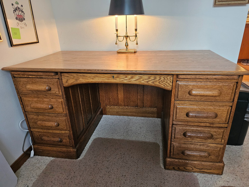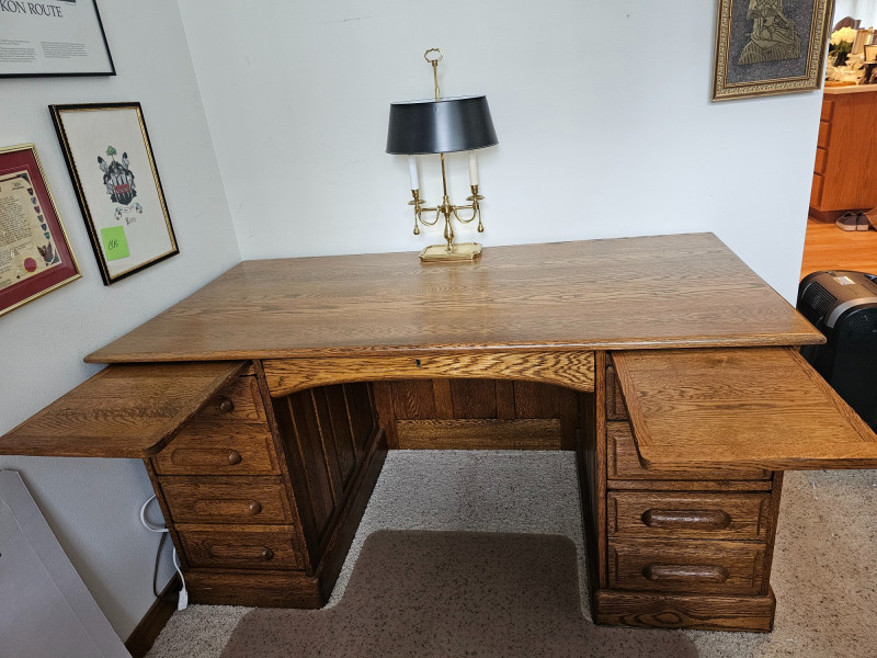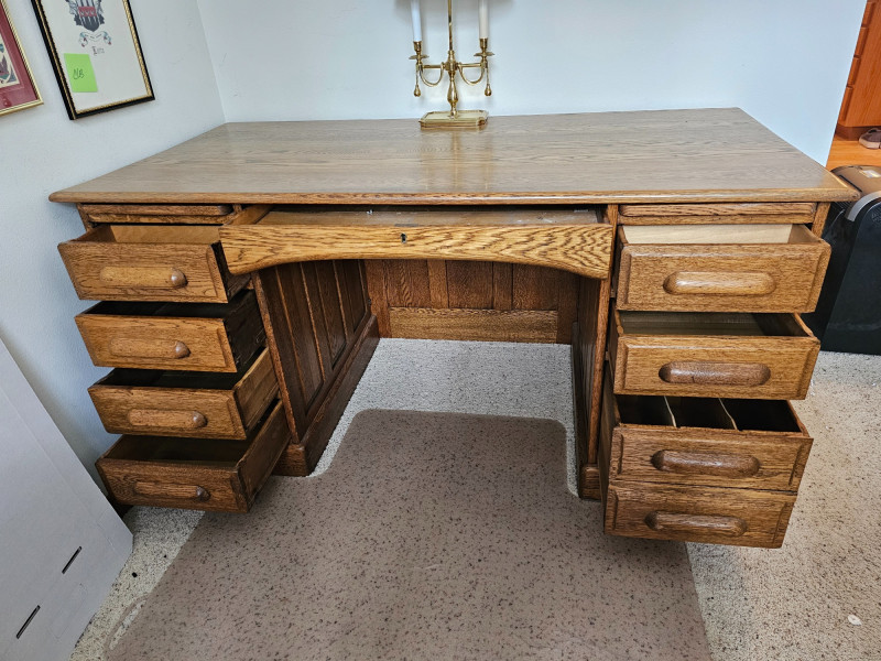 Lot # 264 - Vintage Solid Oak 8-Drawer Desk With 2 Pull Out Writing Surfaces