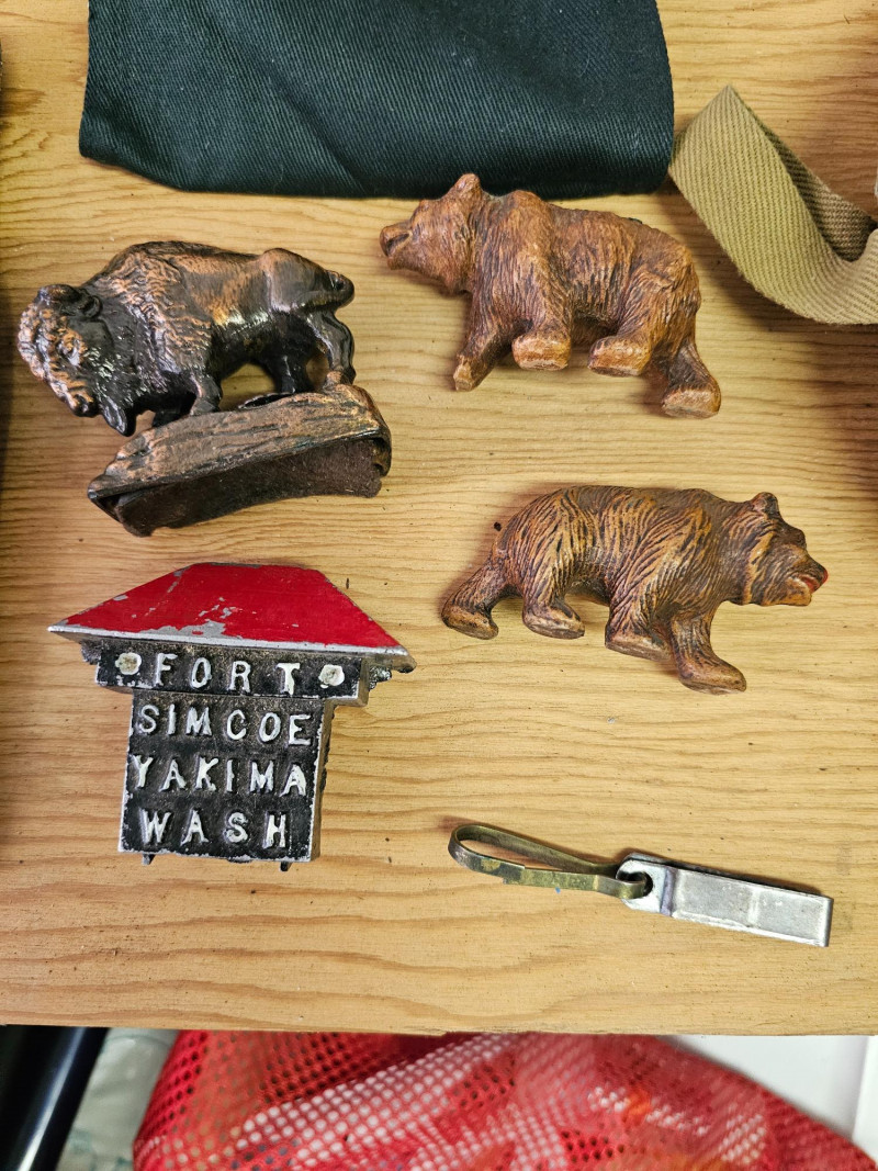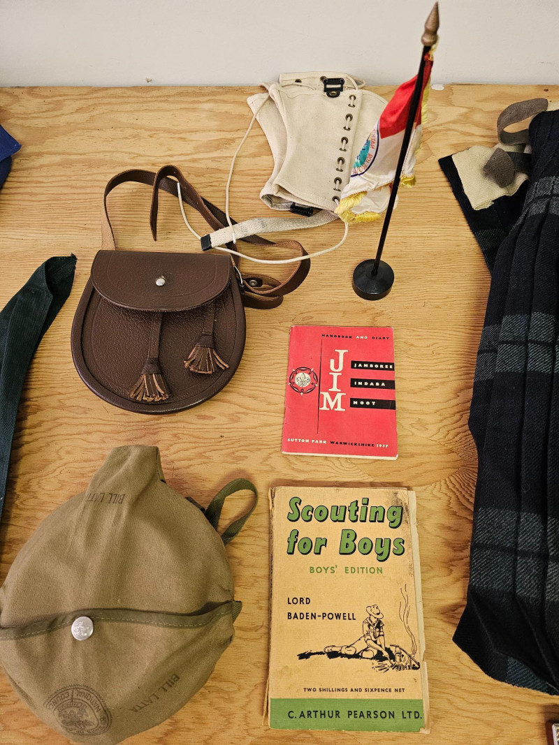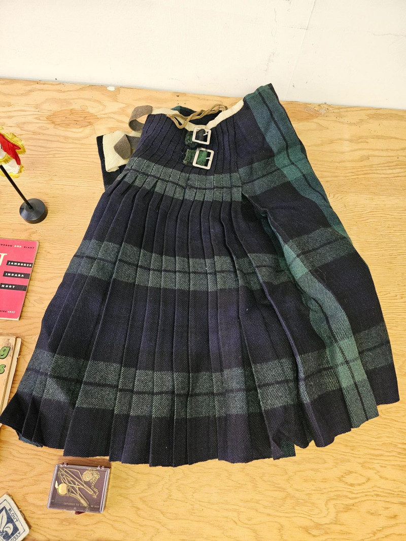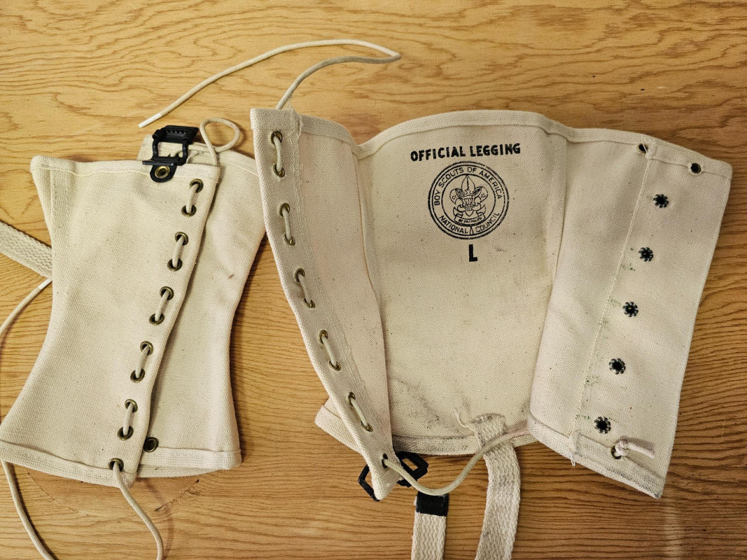 Huge Boy Scout Lot! (11) Scout scarves (4) Pocket knives (3) Canteens (1) Small leather bag (1) Sash full of patches (1) Wrap of leather cord (1) Boy Scout mini flag (1) Pair of Boy Scout leggings (5) Cloth patches (2) Scouting books (3) Scout uniforms with patches (1) Pair of pants with Scouting belt (1) Men's kilt (3) Bison & bear figures (2) Scouting tie clips 40 pieces of Boy Scout Memorabilia!