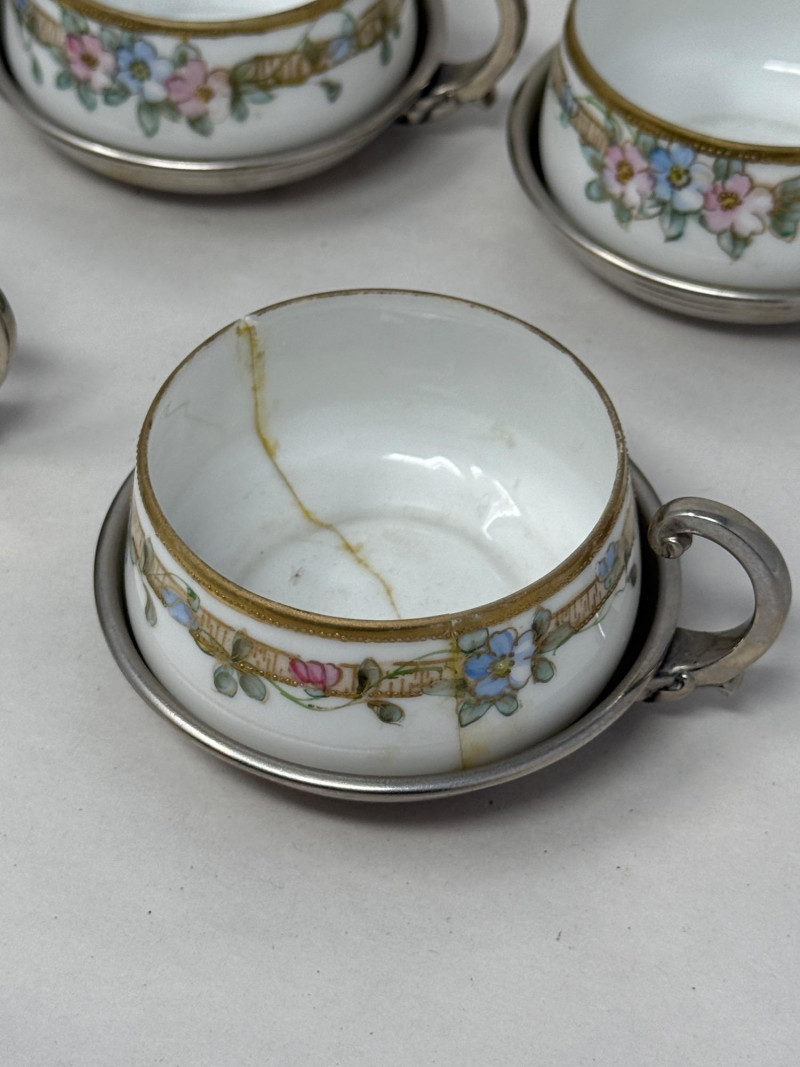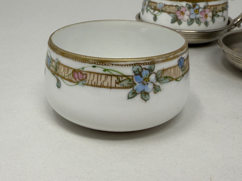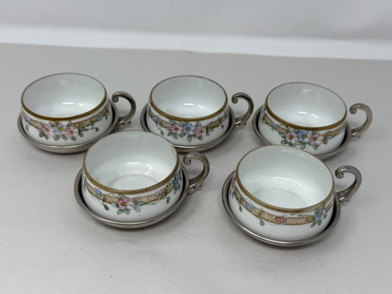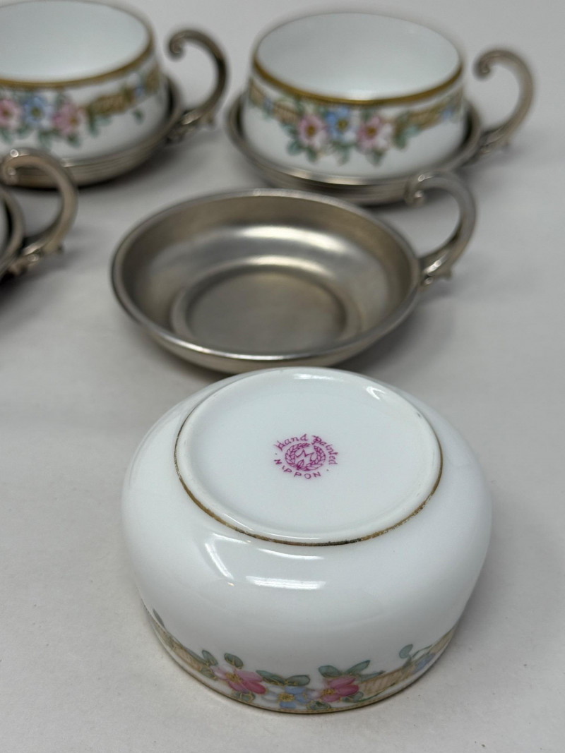 Lot # 270 - (5) Vintage Nippon Demitasse Cup and Metal Saucers