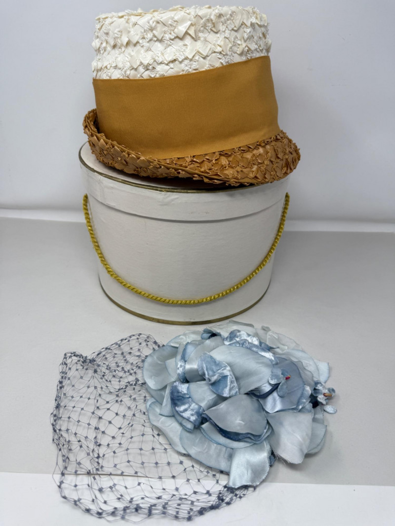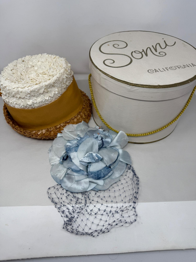 Lot # 291 - Schiaparelli Paris Hat - Velvet Headress & Sonni California Hat Box