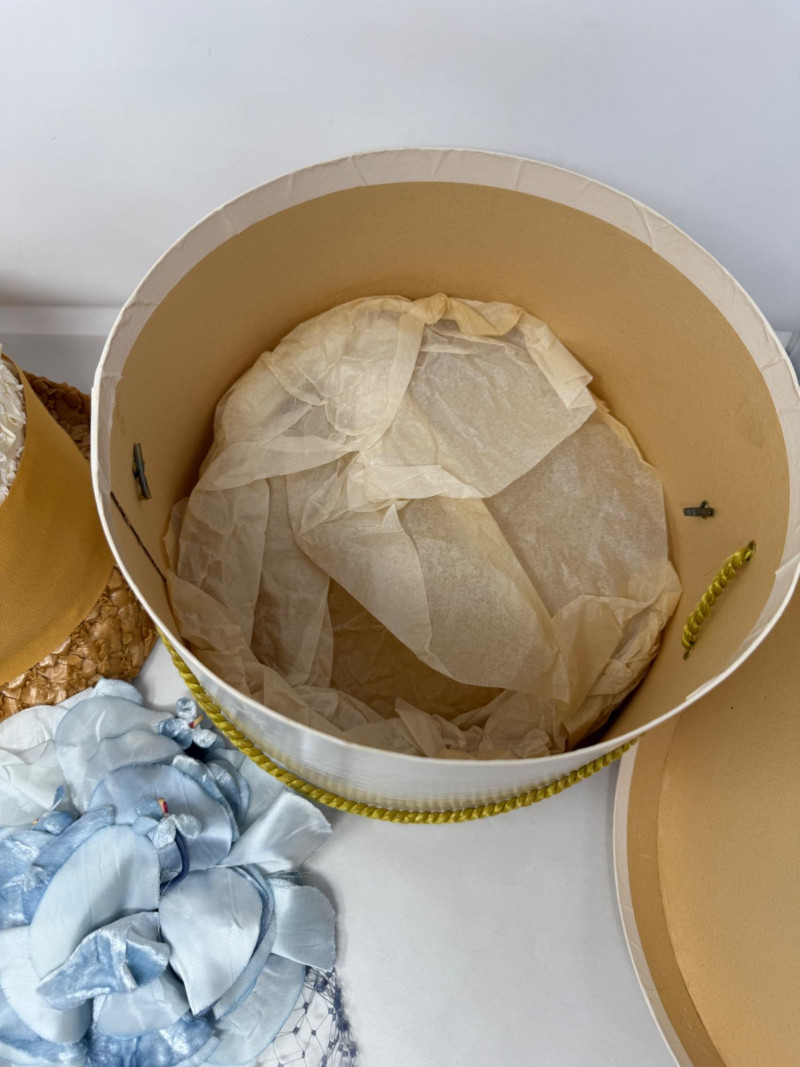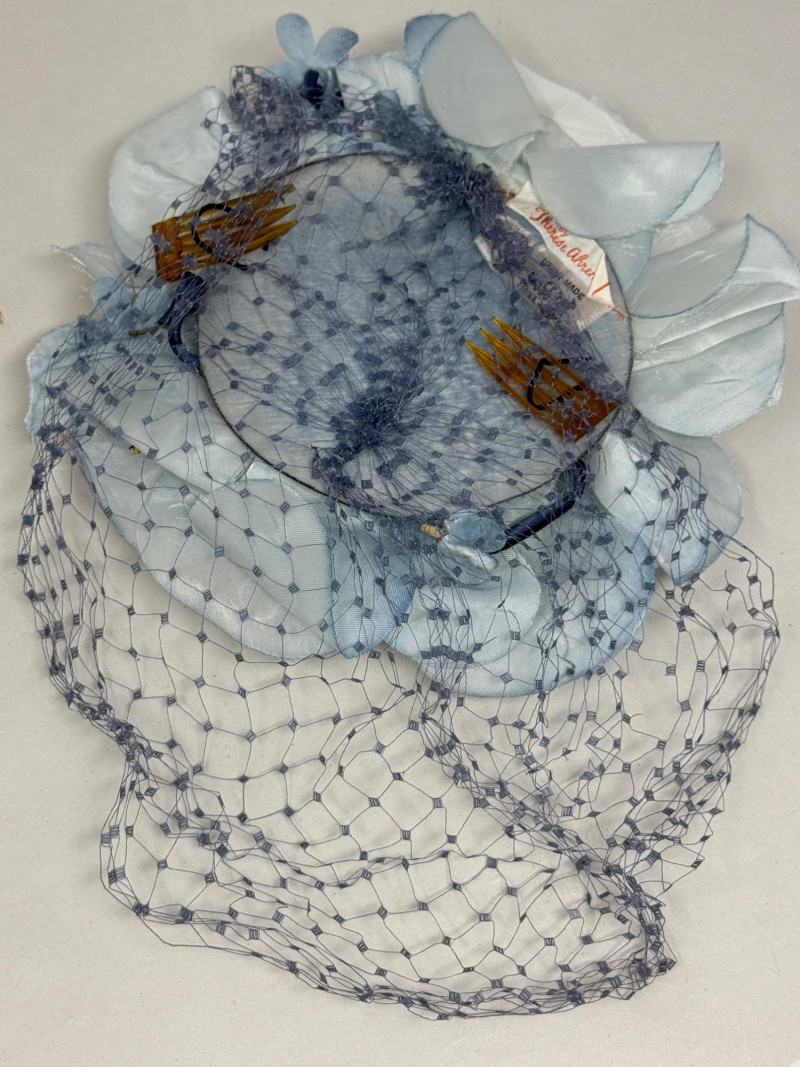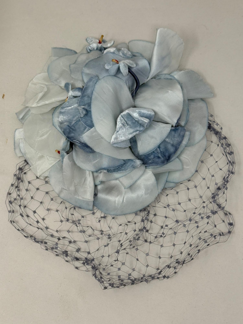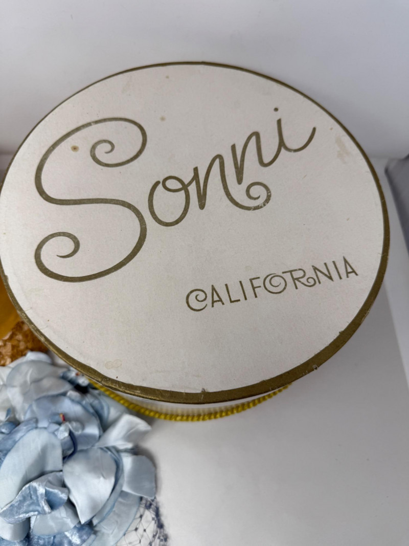 Schiaparelli Paris Hat - Velvet Head Dress & Sonni California Hat Box Schiaparelli Paris Hat Sonni California hatbox is 10”x7” Powder blue velvet head dress