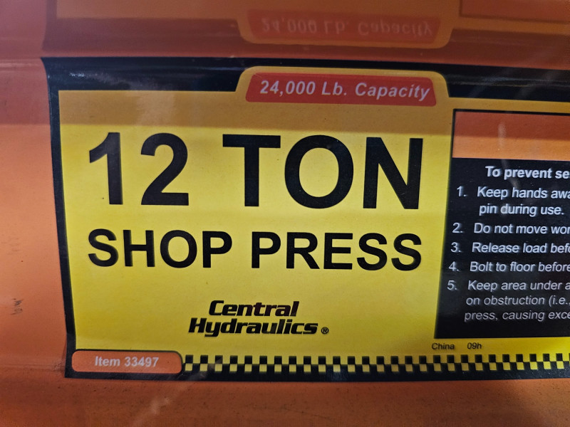 Lot # 5 - Central Machine 12 ton H-Frame Industrial Heavy Duty Floor Shop Press