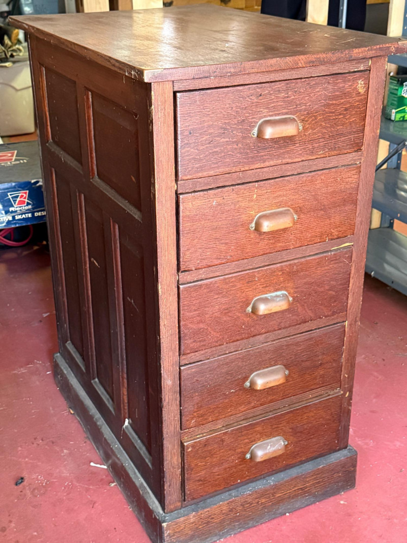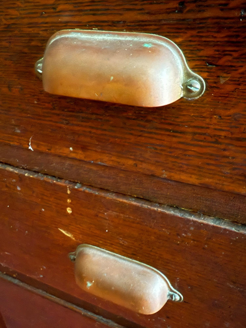 Antique 5 Drawer Chest of Drawers 29.5x19.5x37.5” Cool old piece with lots of character. Copper drawer pulls with aged patina.