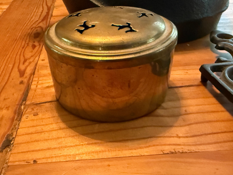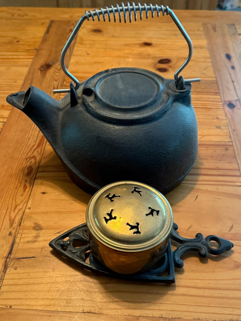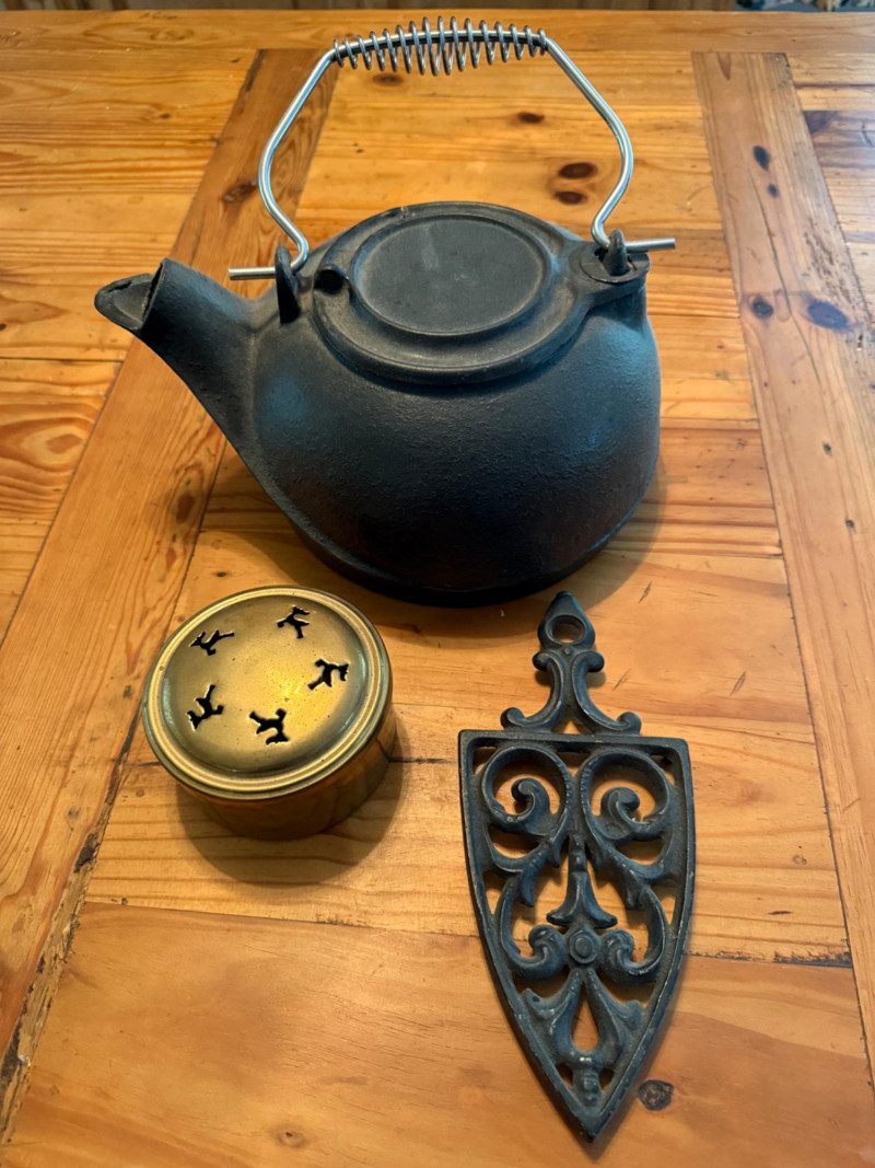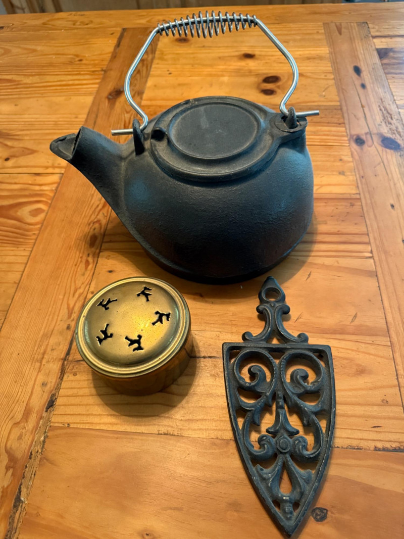 Cast Iron Kettle - Shield Trivet & Brass Potpourri Box