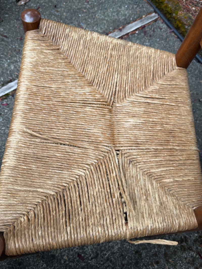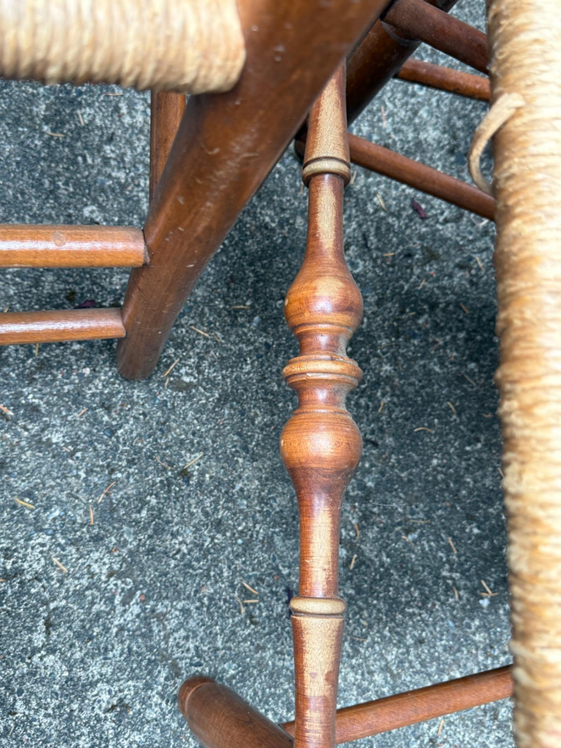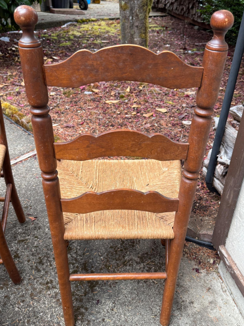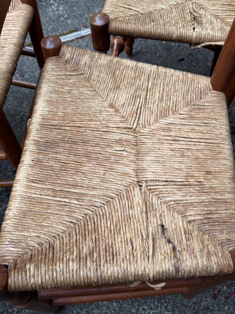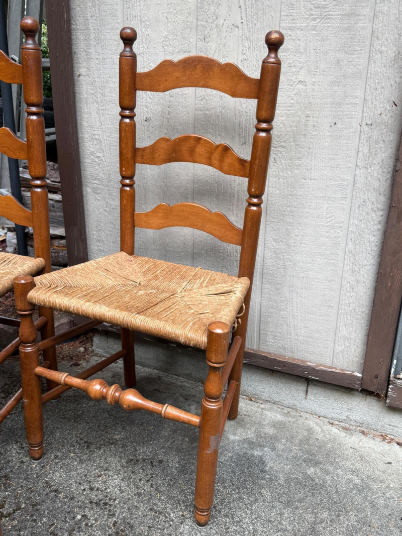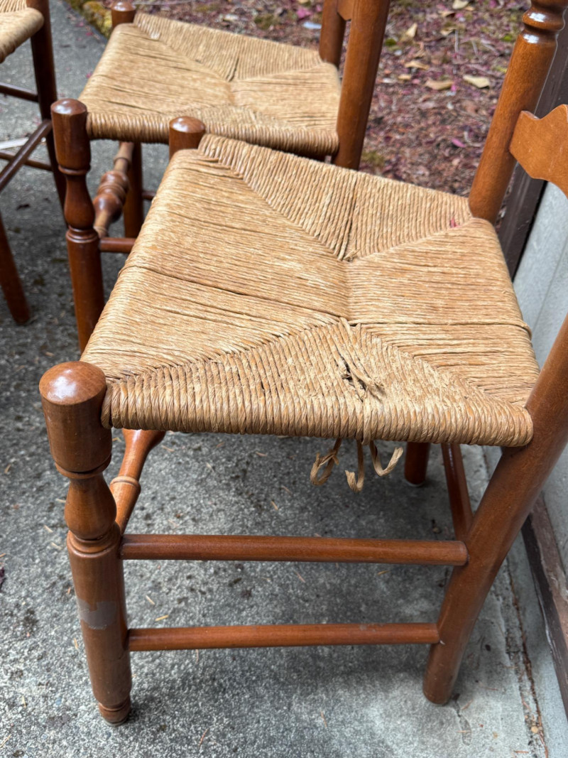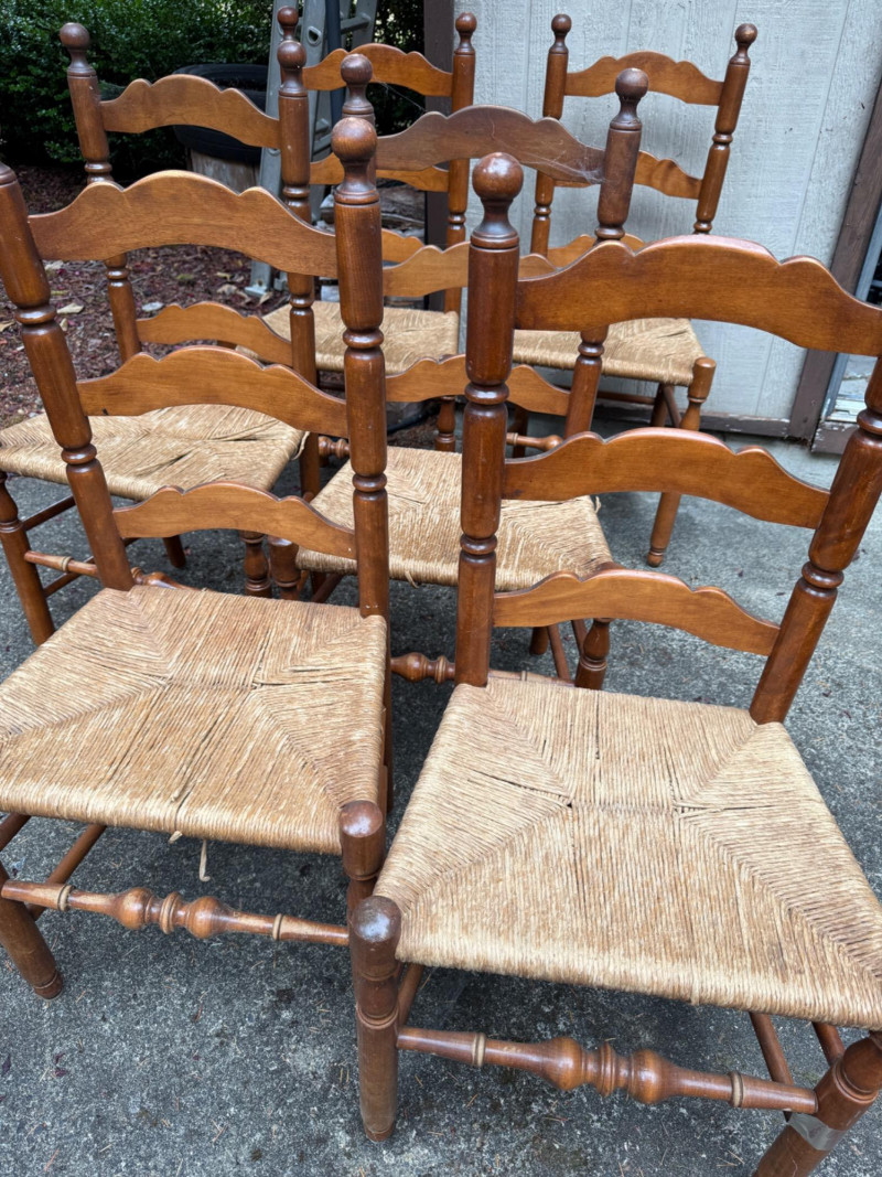 Set of 6 Mid Century Ladderback Chairs & Rush Seats 19x14x39” with 18” seat height