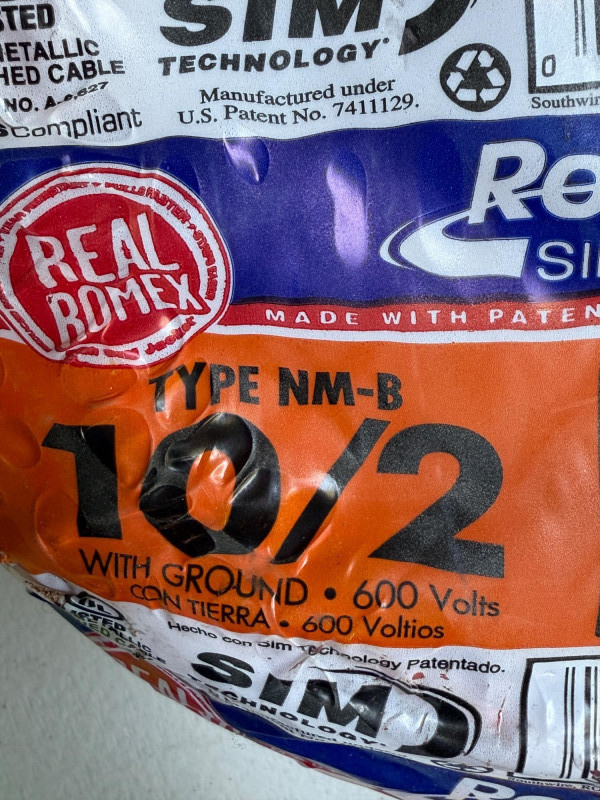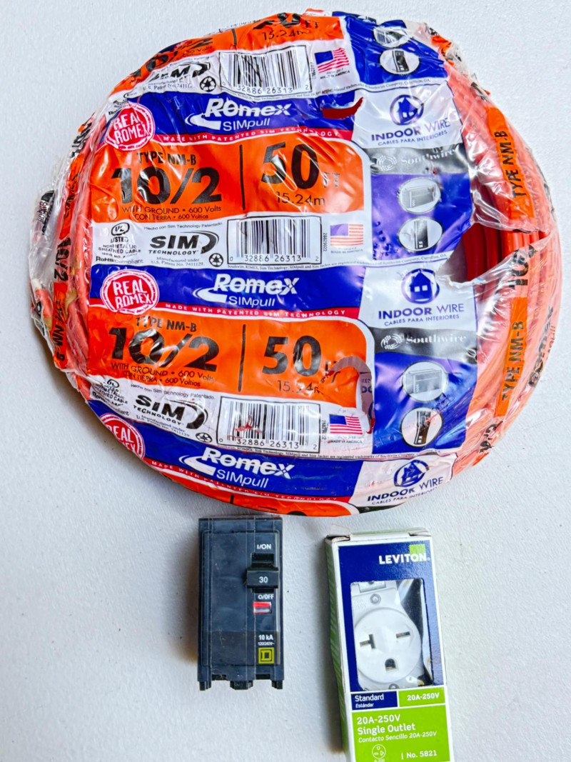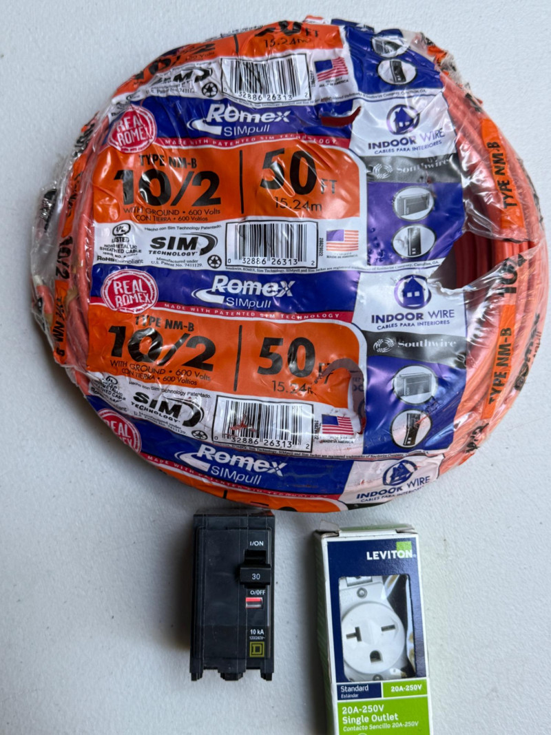 50' 10/2 Romex - Square D 30 Amp Breaker & 20A-250V Single Outlet NIB