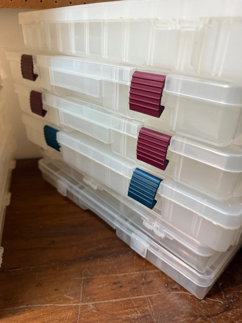 Small Part Storage Containers with a few more added. (11) 9x14” Mostly Plano Lots of dividers