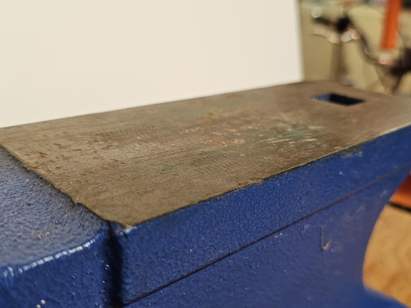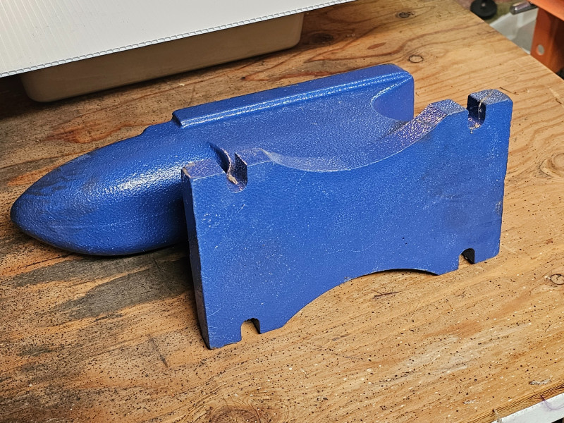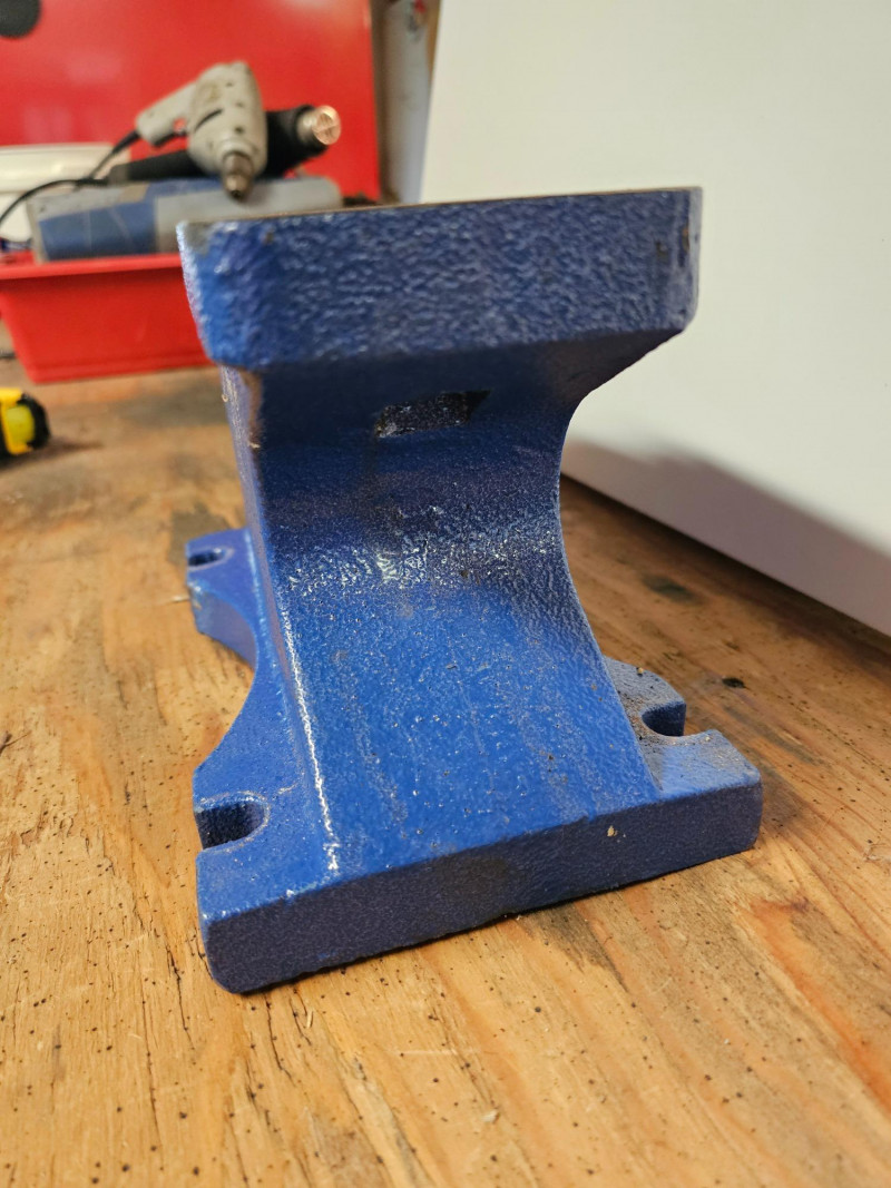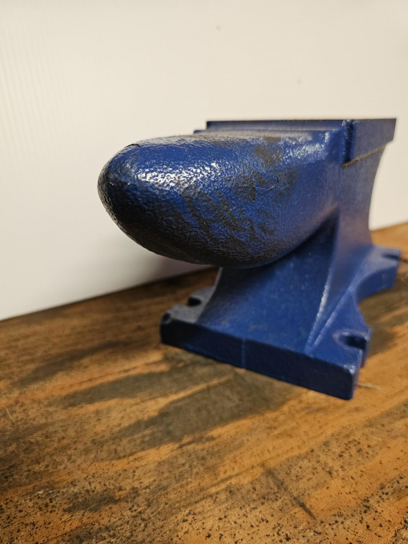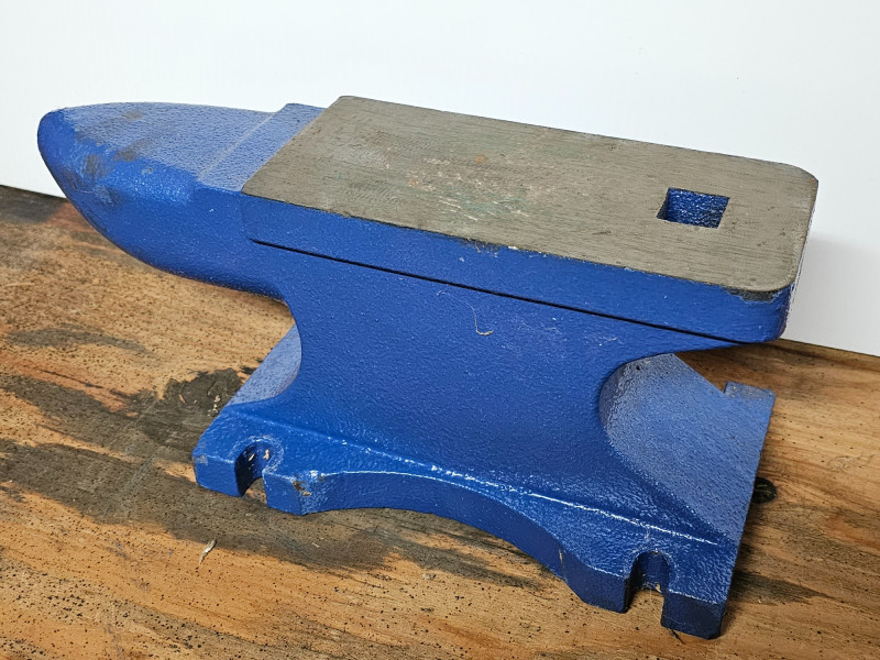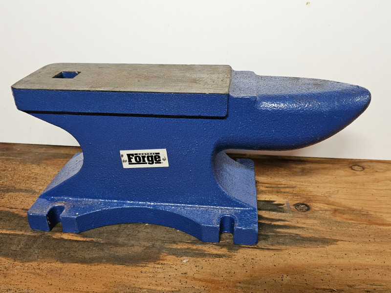Central Forge 55 lb. Rugged Cast Iron Anvil Made of rugged cast iron Dimensions & Work Surface: It measures 15 inches long overall and 6-5/8 inches high, with an 8-1/2 inch x 4 inch work surface. Features: It includes a built-in hardy hole for accessories, punching, and bending, and a rounded horn for smooth bending and shaping. Applications: Ideal for metalworkers and smiths, it is suitable for various tasks like riveting, flattening, forging, and forming metal. In good condition (see pics) 6.5"T x 14.25"L x 5.5"D