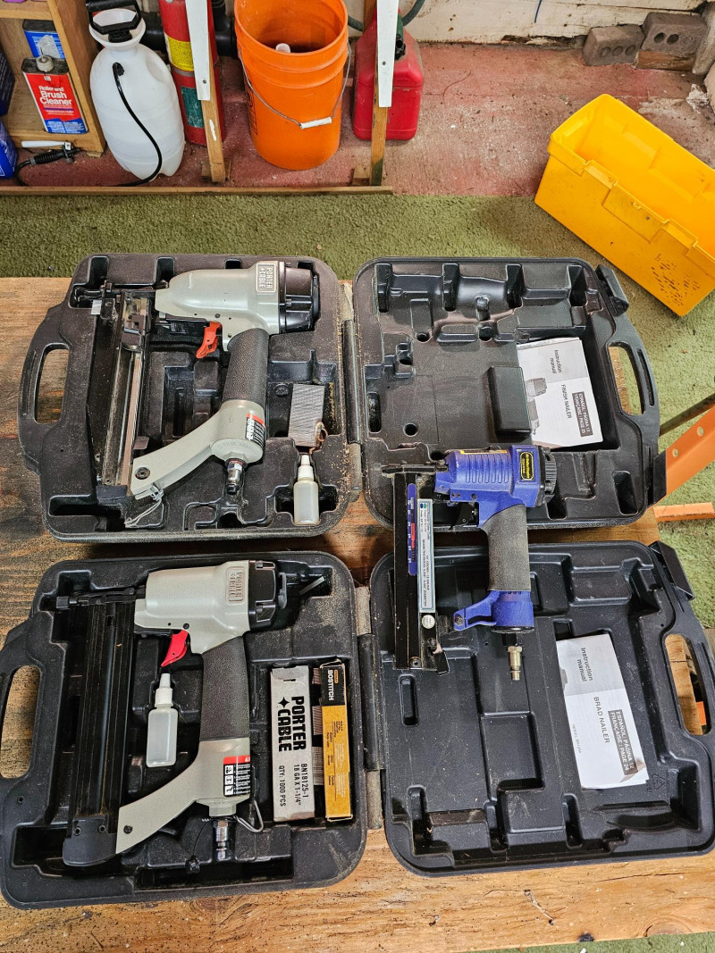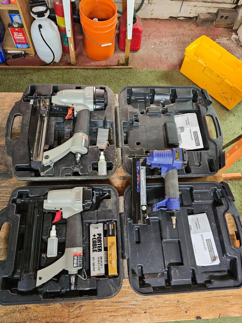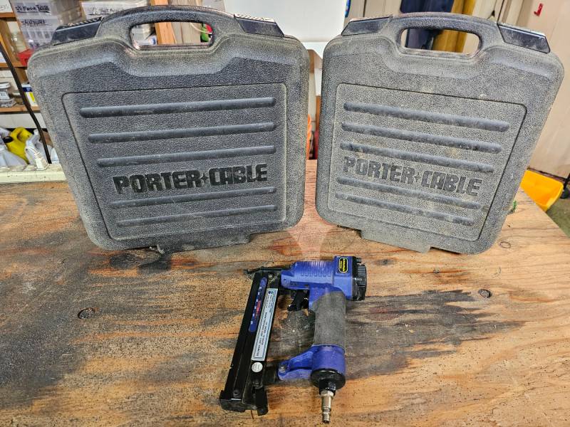 3 Air Nailers (Finish Nailer, Brad Nailer & Air Nailer/Stapler) Porter Cable 16 Gauge Finish Nailer Model #FN250B Porter Cable 18 Gauge Brad Nailer Model #BN125A Central Pneumatic 18 Guage 1/4" Crown Nailer/Stapler Item #97525 Porter Cable air nailers include hard case, manuals and accessories. Crown nailer/stapler is bare tool only. Untested! 3 air tools total