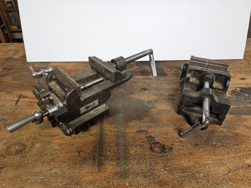 Grizzly G1064 4" Cross-Slide Vise & Machinist's Vise The cross-slide vise, commonly used with drill presses or for light milling operations, allows for precise two-axis positioning of a workpiece. It is a cross-sliding vise, also known as an XY vise, designed for precise positioning of workpieces Key specifications include a 4" jaw width and 3-1/2" jaw opening It features adjustable gibs for smooth travel, an exclusive slide bar to prevent jaw tilt when tightening, and are suitable for tasks like cutting keyways and precise drilling Also includes a machinist's vise, also known as a milling vise or machine vise. This heavy-duty tool is designed to securely hold workpieces during machining operations like milling, drilling, grinding, or tapping It uses a screw mechanism to apply clamping force, preventing movement or vibration during cutting operations Both Work! Grizzly Vise: 5.5"T x 15"W x 17"D Machinist's Vise: 3.75"T x 13"W x 6."D