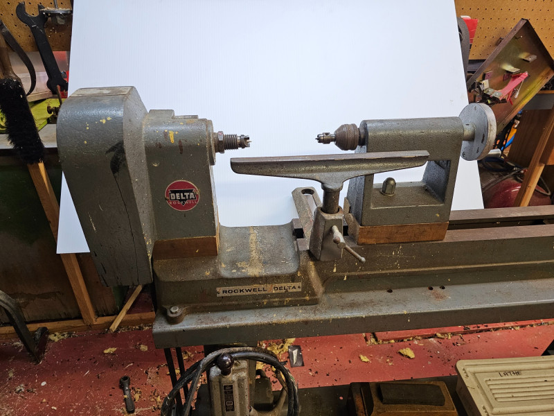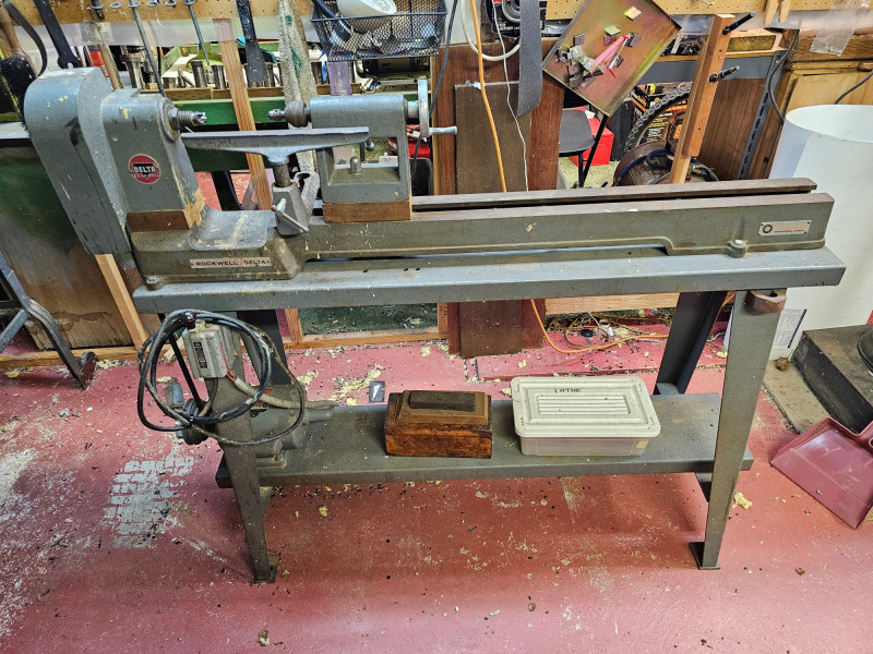 Rockwell Delta Woodworking Lathe Features cast-iron construction for stability, powerful 1/2hp motor, and 4-speeds Applications: These lathes are suitable for a wide range of turning applications, from small spindle work like pens to larger bowl turning. Power cord could use replacing Tested - Works! 44.5"T x 53"W x 18"D