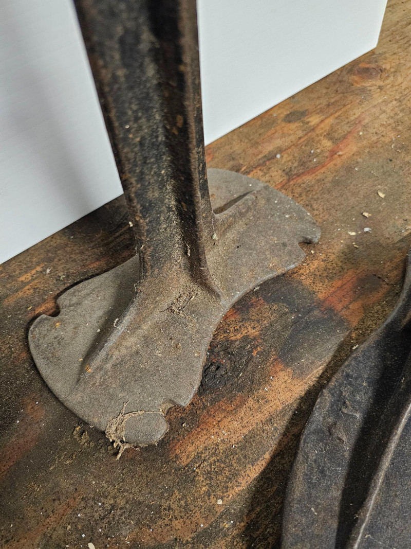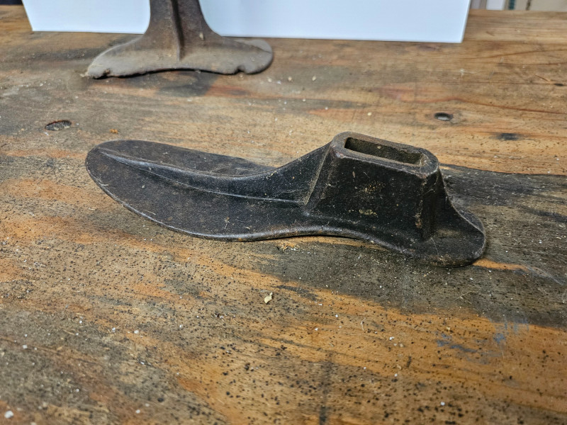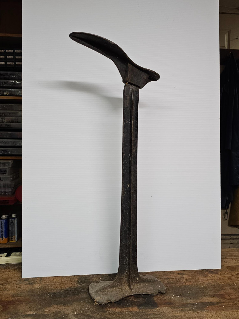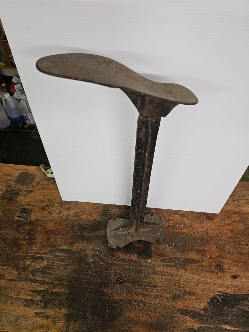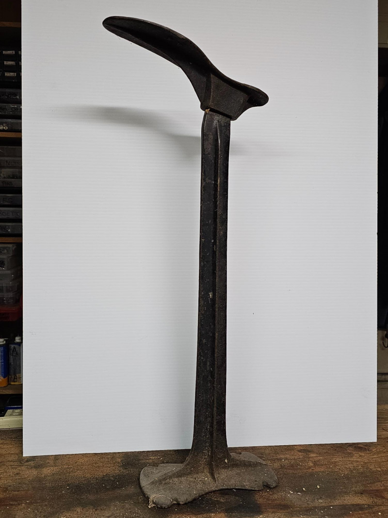 Antique Cast Iron Cobbler Shoe Stand These stands were traditionally used by cobblers and shoemakers to hold shoes or boots during repair or construction It served as a stable base for attaching shoe lasts (forms) or for placing a shoe directly on the anvil-like top for various repair tasks, such as hammering, stretching, or resoling The "foot" piece comes off of the stand 25.5"T x 9.5"W x 4.5"D